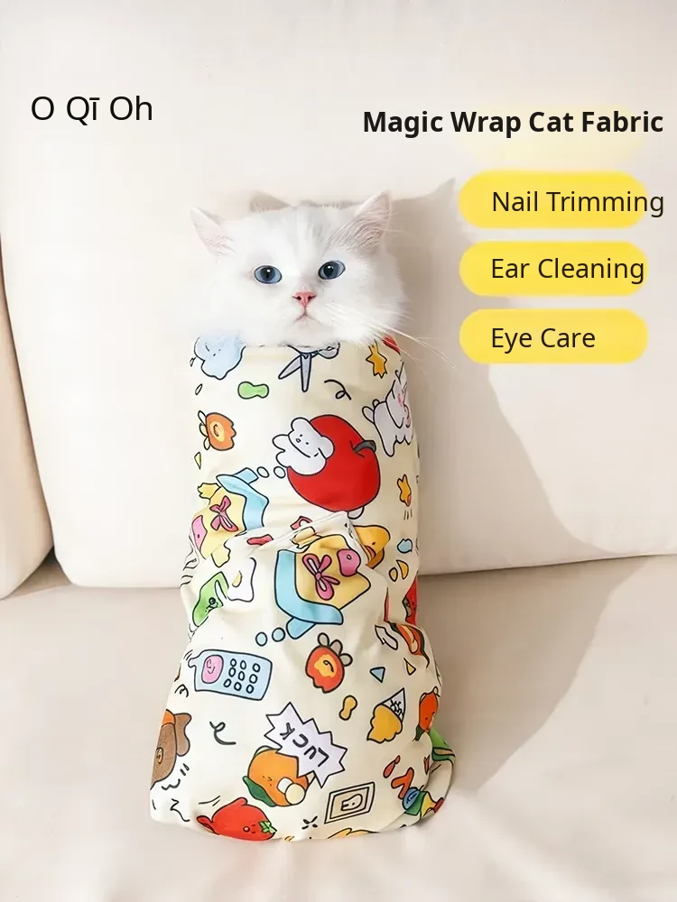 Cat Nail Clipping Safety Pouch - Anti-Scratch, Anti-Bite, Self-Adhesive Cat Bath Bag for Easy Grooming and Nail Care