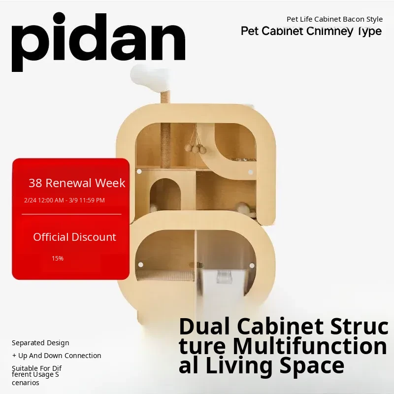 pidan Multi-Functional Pet Storage Cabinet with Chimney Design – Stylish Cat House and Climbing Frame, Perfect for Your Feline's Comfort and Play!