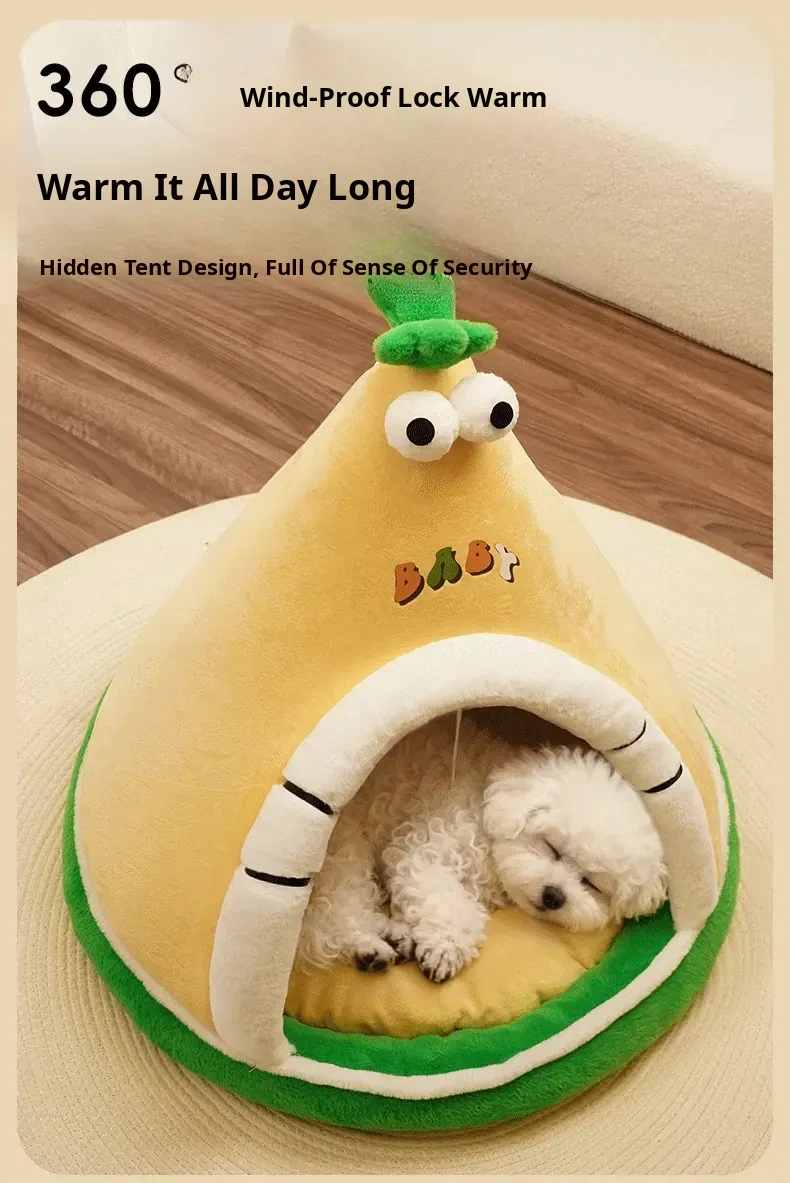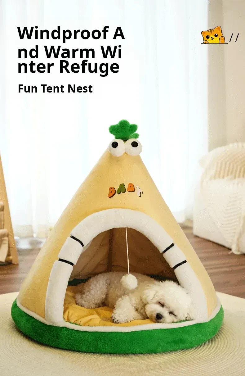 2025 New Thickened Winter Dog House for Small Breeds - Insulated, Semi-Enclosed, Washable Dog Bed for All Seasons - Cozy Cat House