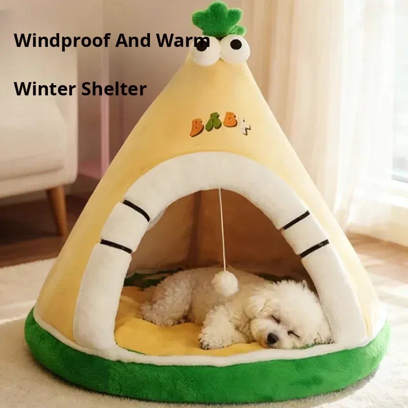 Cozy Enclosed Pet Bed for Dogs and Cats - Winter Warmth, Safe and Secure Design for Small to Medium Dogs, Perfect for All Seasons