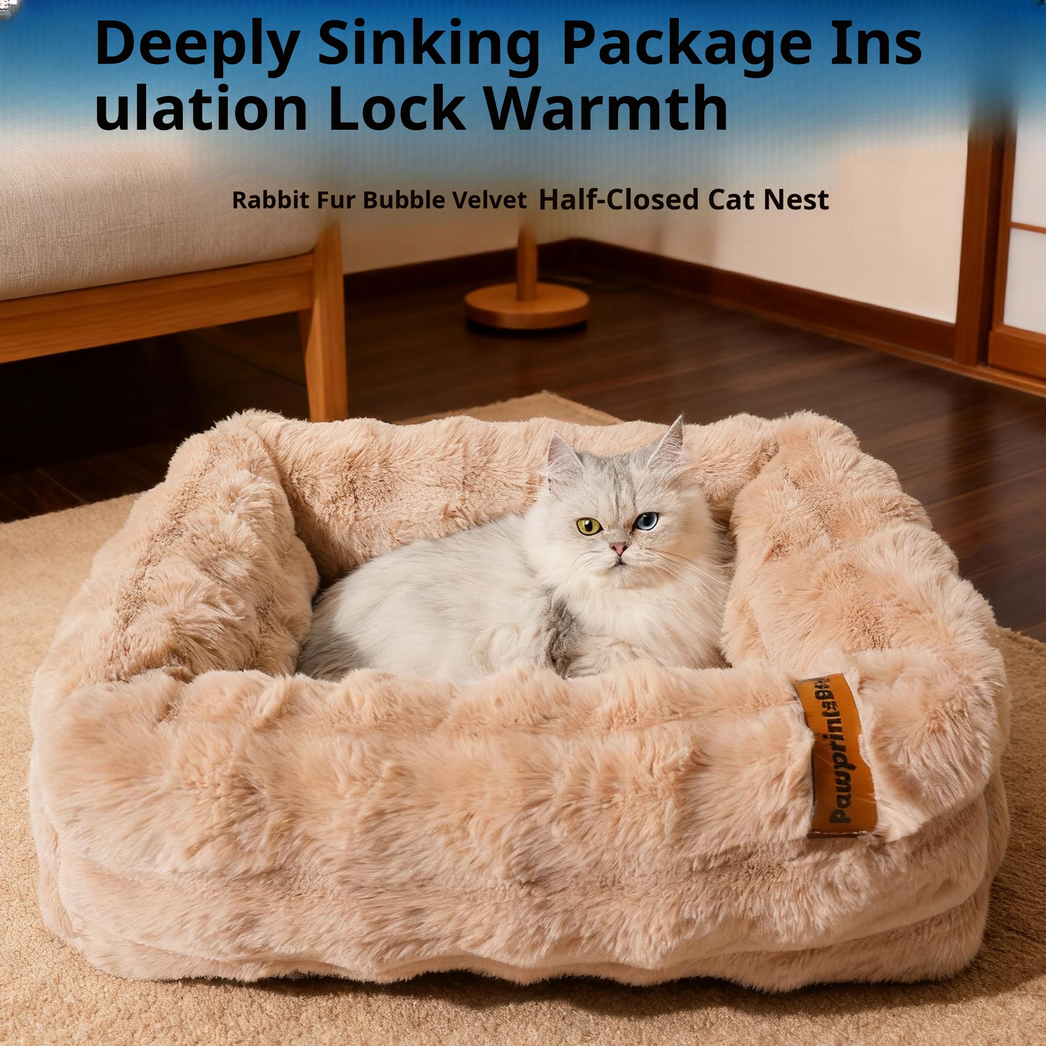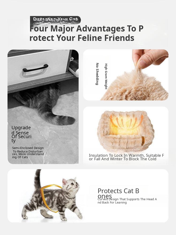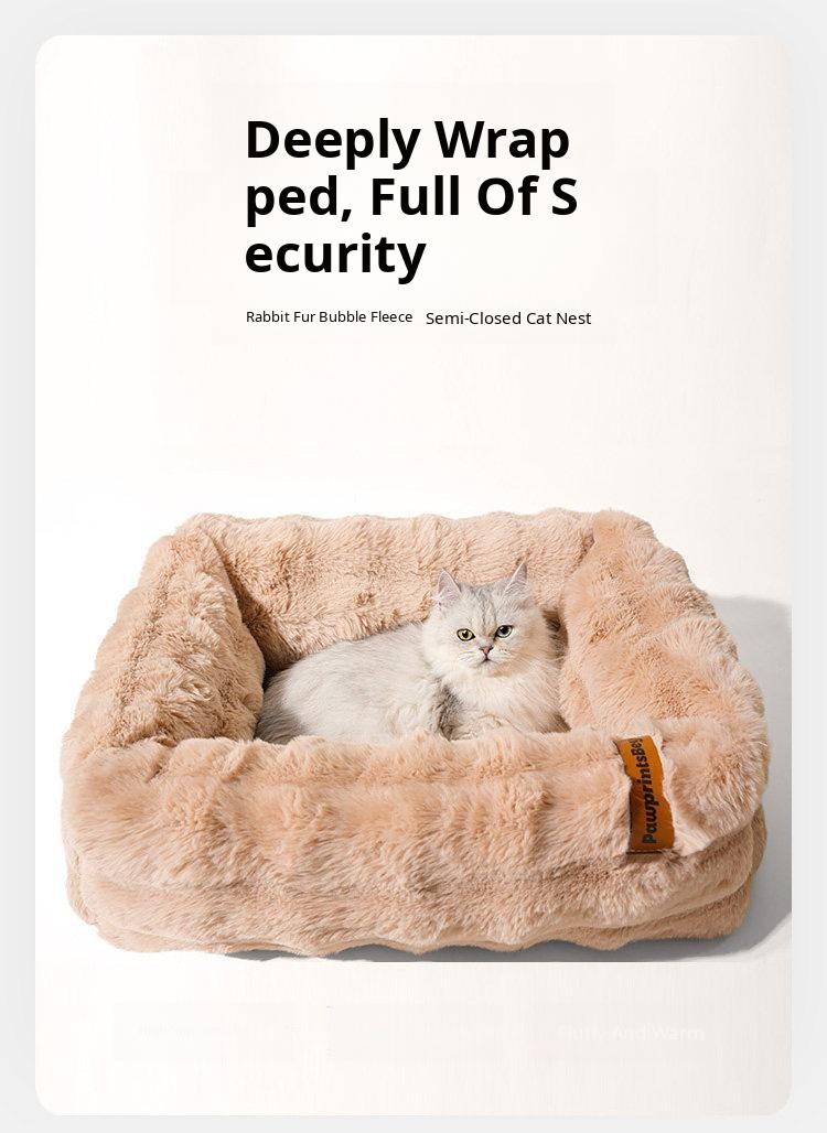 Cozy Half-Enclosed Cat Bed for Winter - Provides Security and Warmth for Your Feline Friend, Removable Plush Liner, Perfect for Cats and Small Dogs, Comfortable Sleeping Mat and Blanket Combo