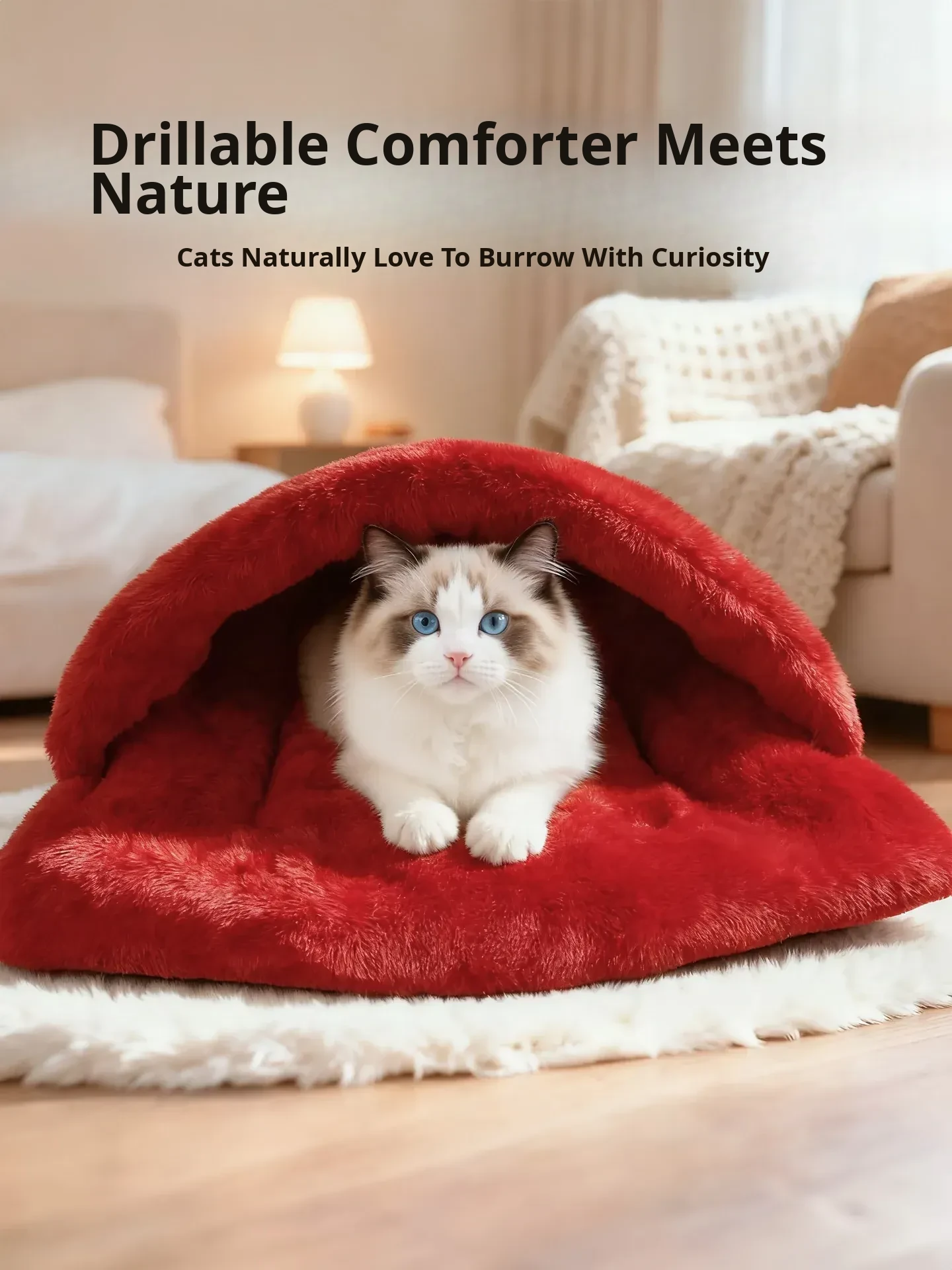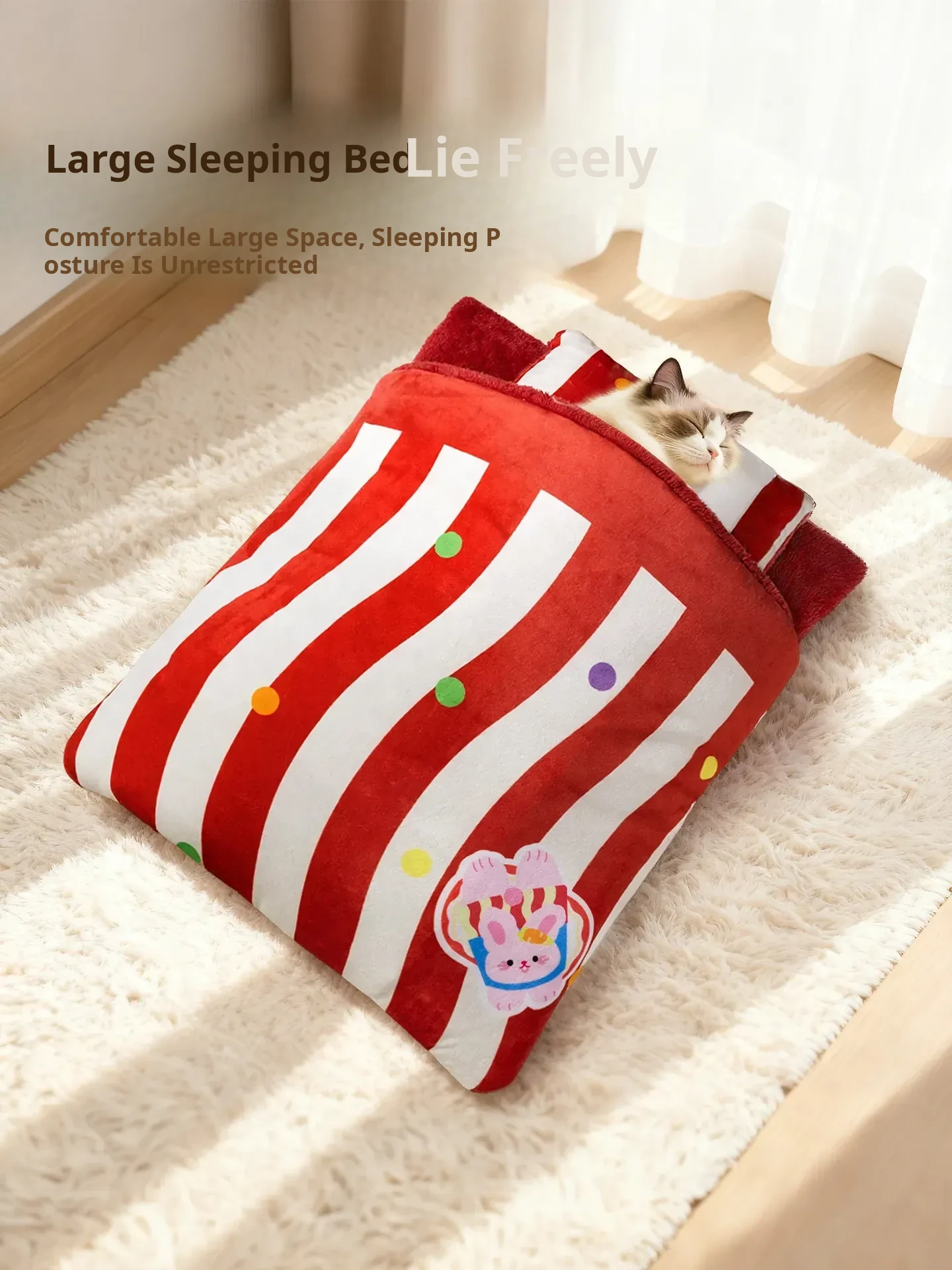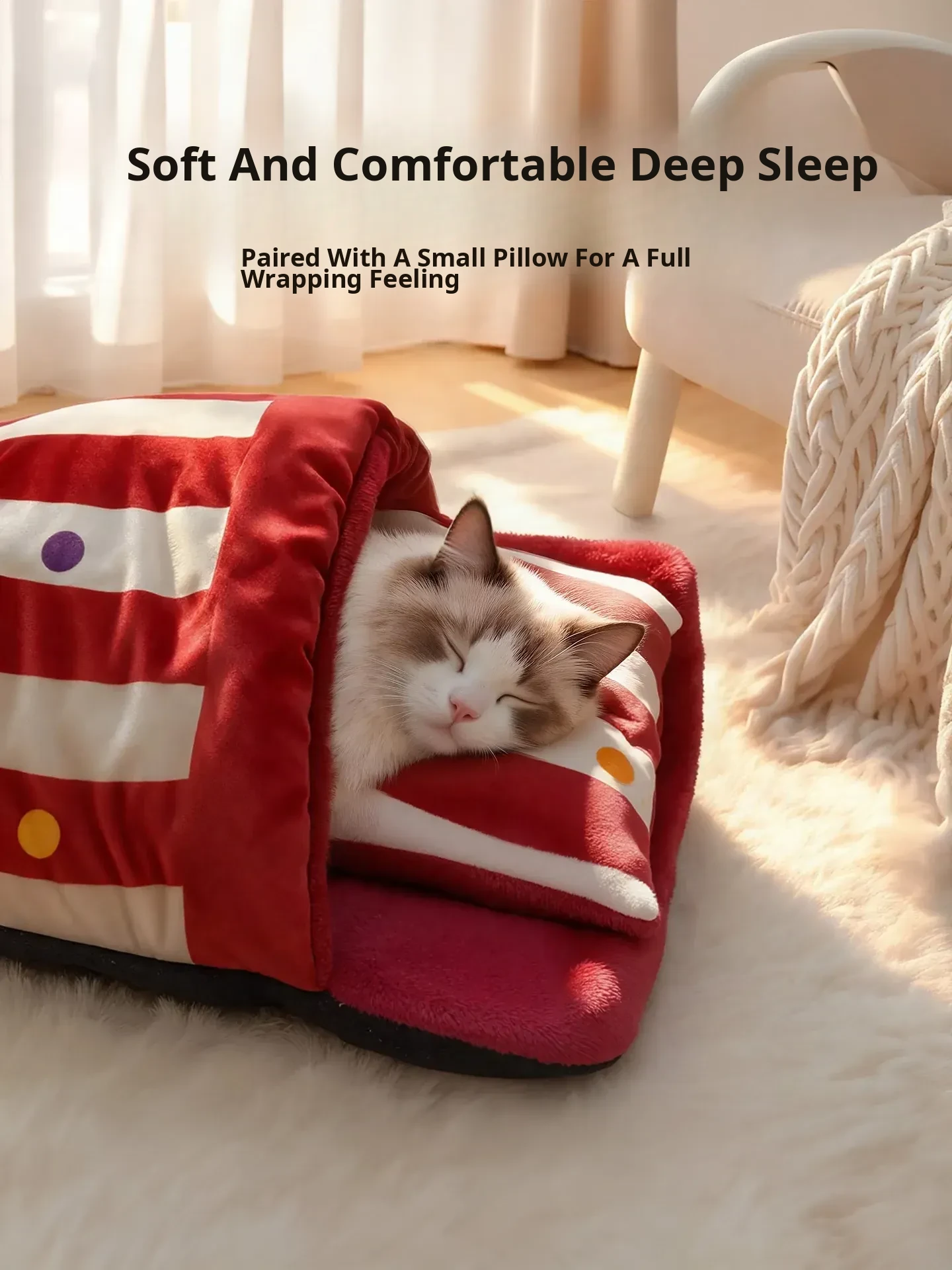 Cozy Winter Cat Bed - Enclosed Design for Ultimate Warmth, All-Season Use, Safe and Comfortable Sleeping Bag for Cats, Trendy and Popular Plush Mat for a Peaceful Sleep