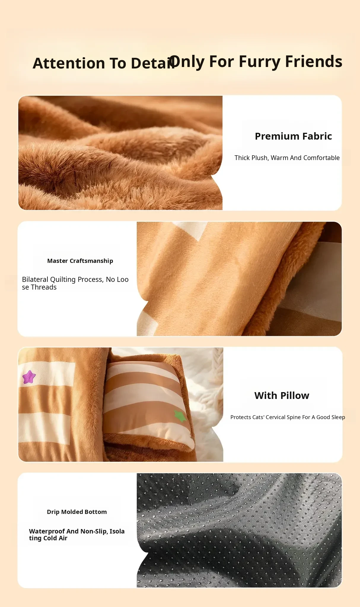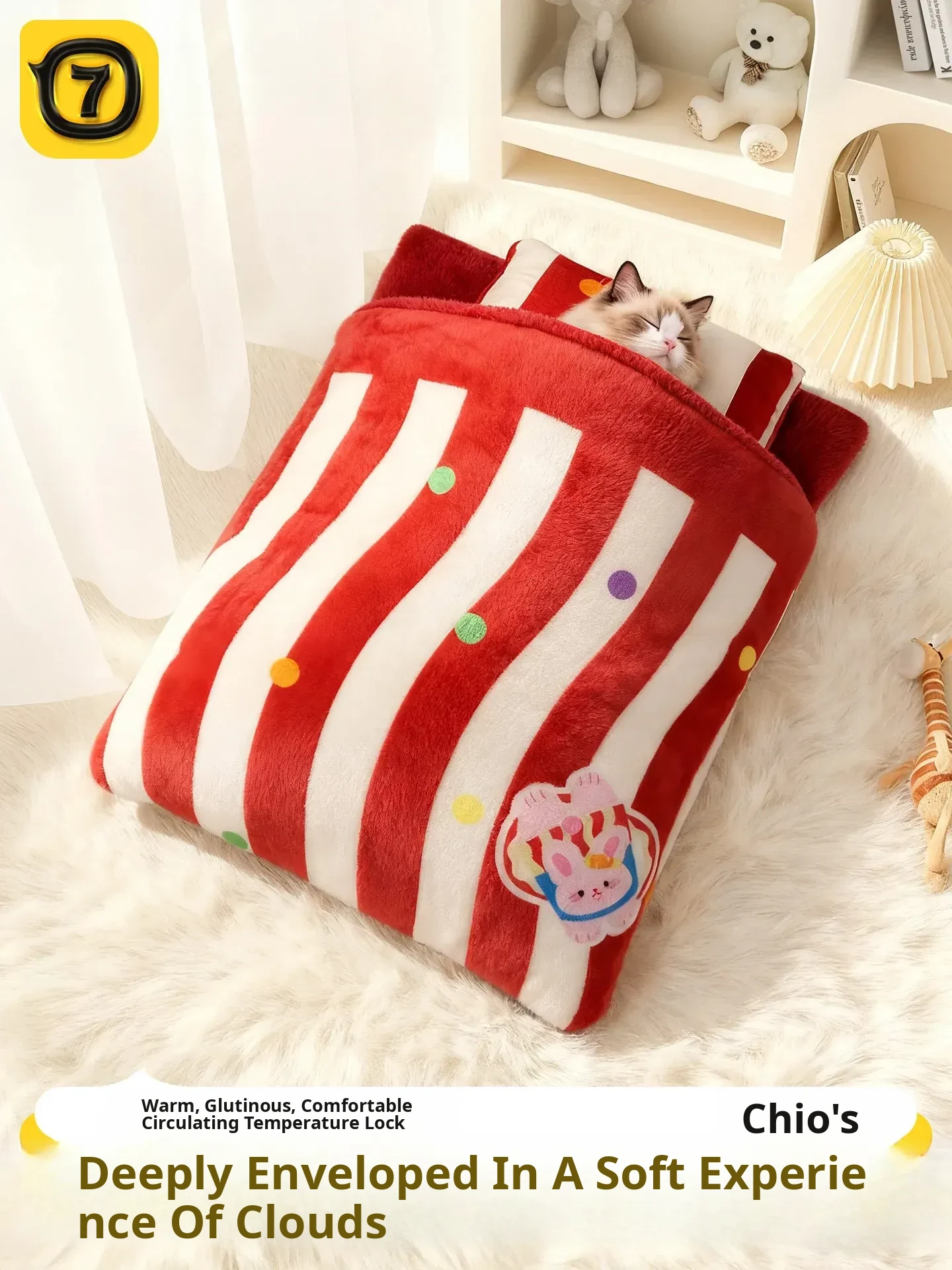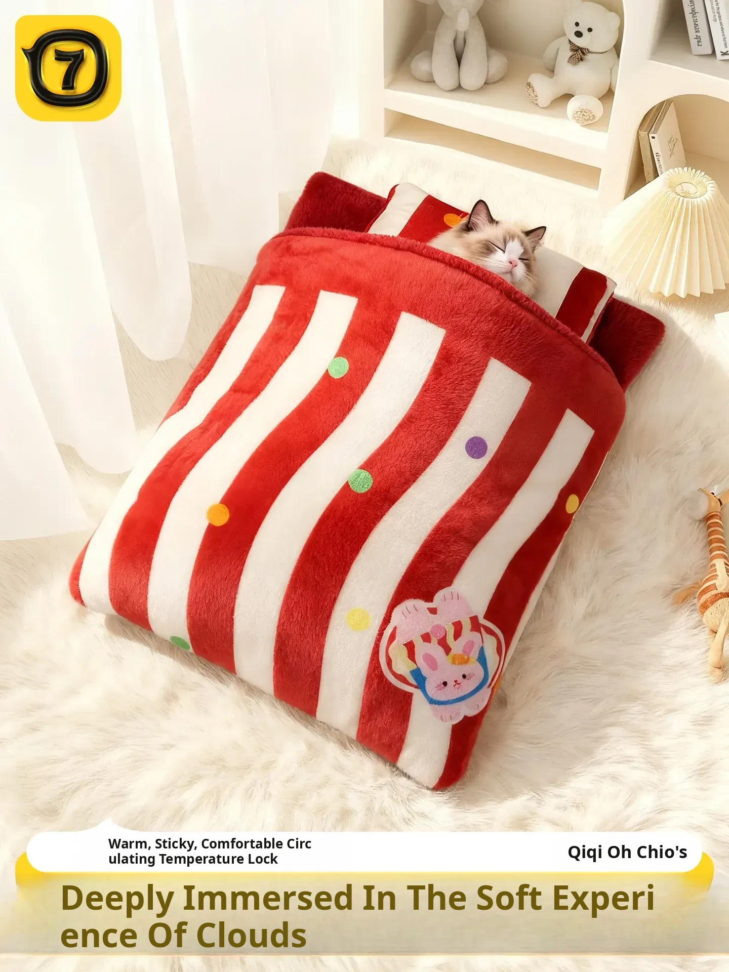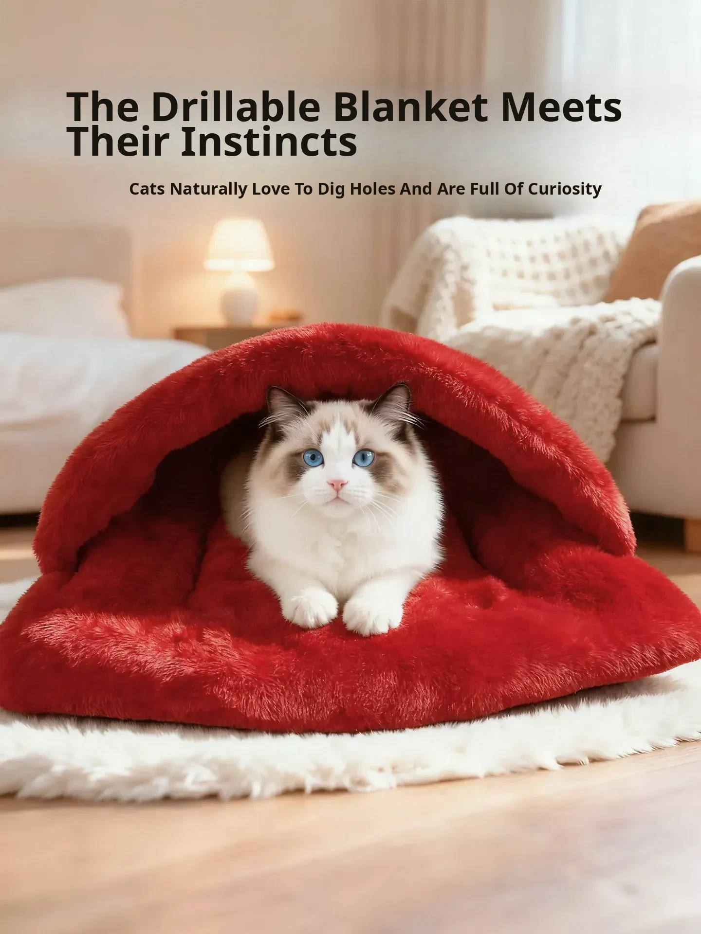 Cozy Winter Cat Bed - Enclosed Design for Ultimate Warmth, All-Season Use, Safe and Comfortable Sleeping Bag for Cats, Trendy and Popular Plush Mat for a Peaceful Sleep