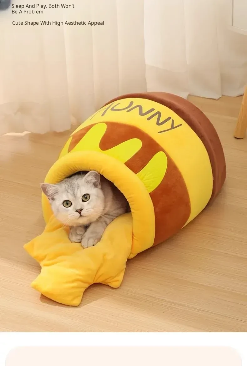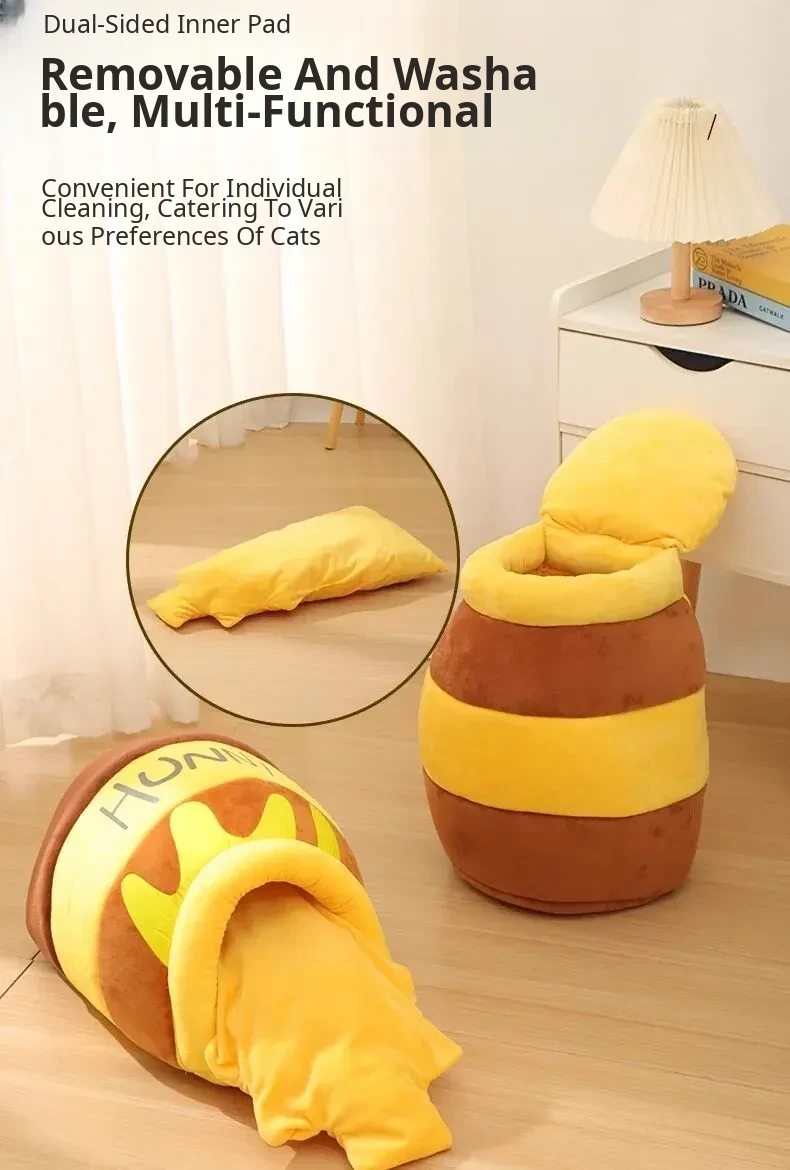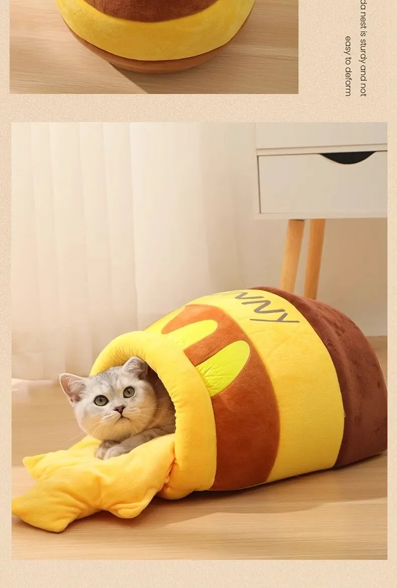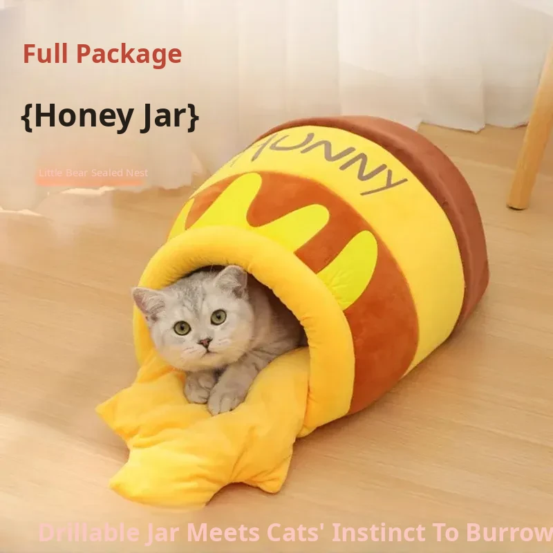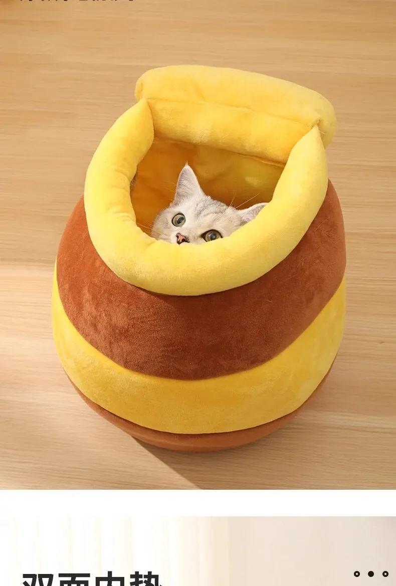 Cozy Winter Cat Bed - Insulated Sleeping Bag for Cats, Honey Jar Design, Enclosed for Safety and Comfort, Perfect Winter Retreat for Kittens and Cats