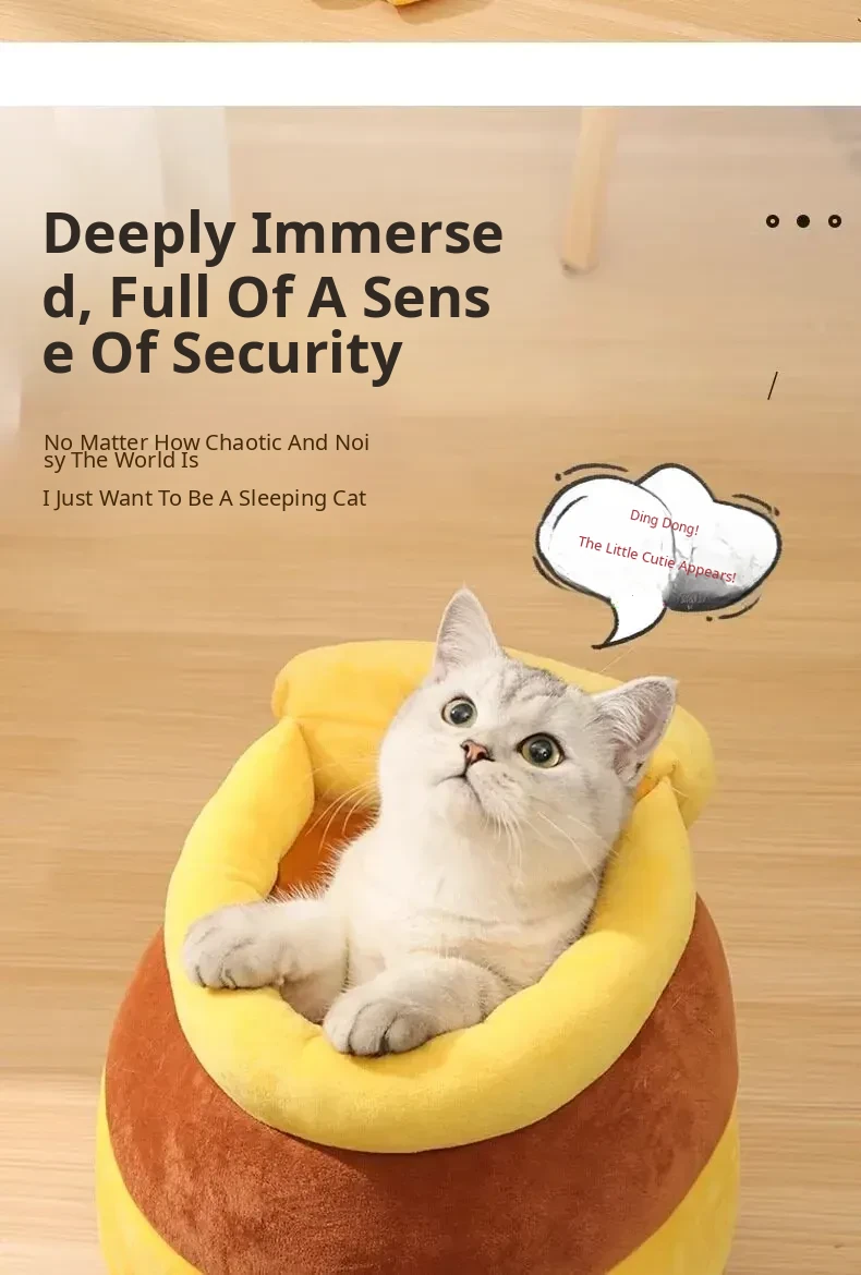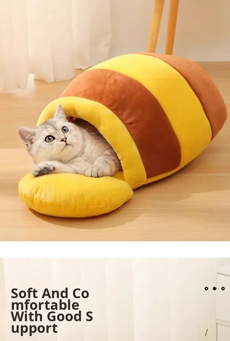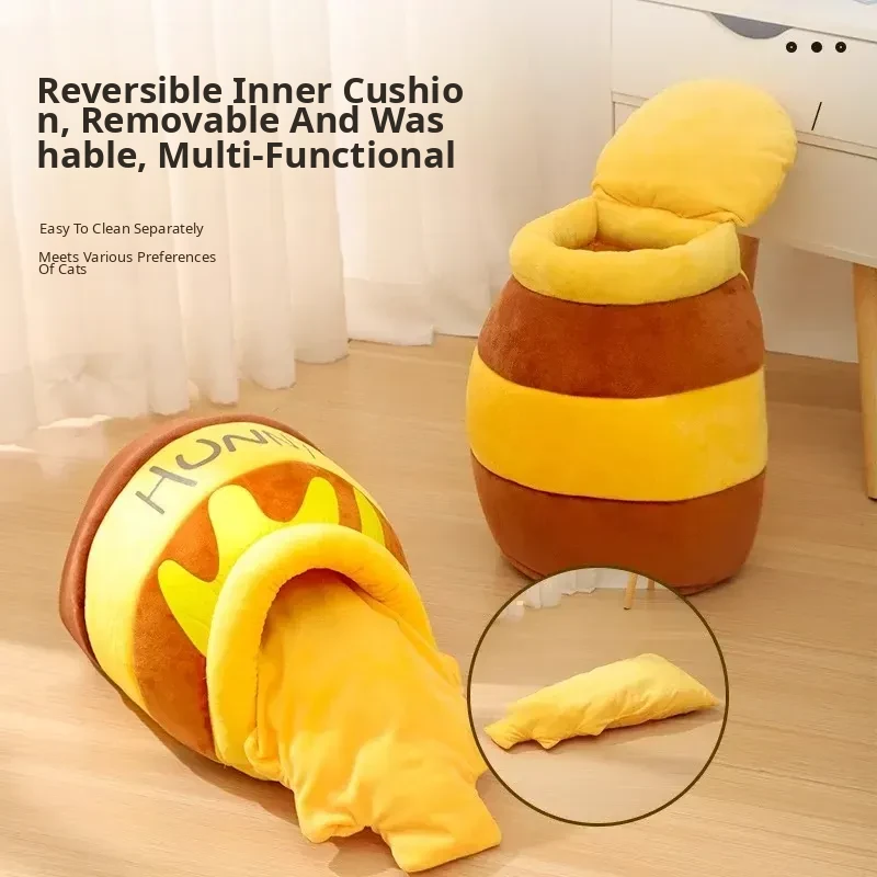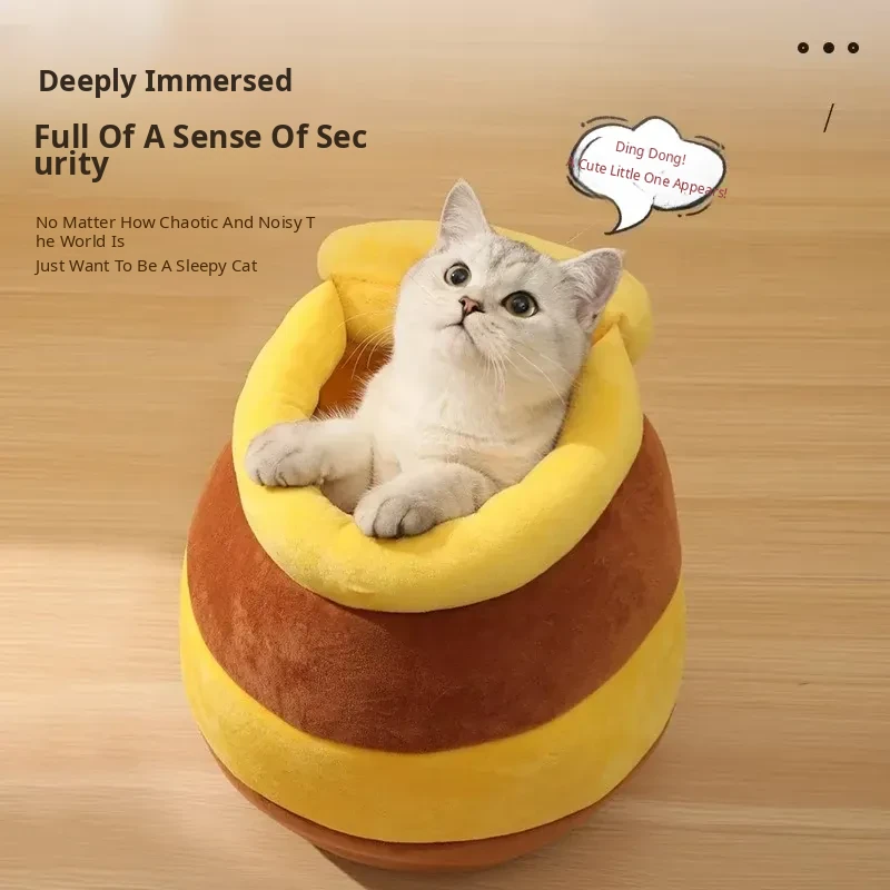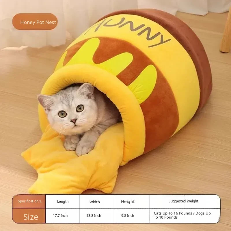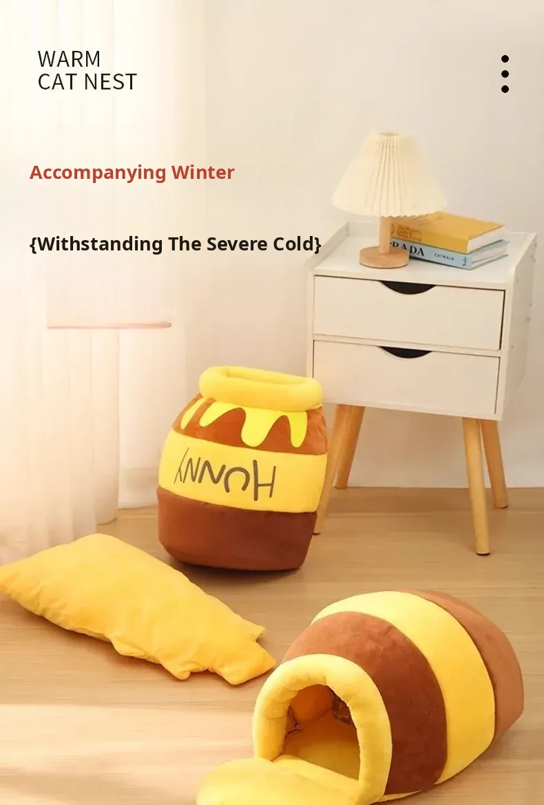 Cozy Winter Cat Bed - Insulated Sleeping Bag for Cats, Honey Jar Design, Enclosed for Safety and Comfort, Perfect Winter Retreat for Kittens and Cats