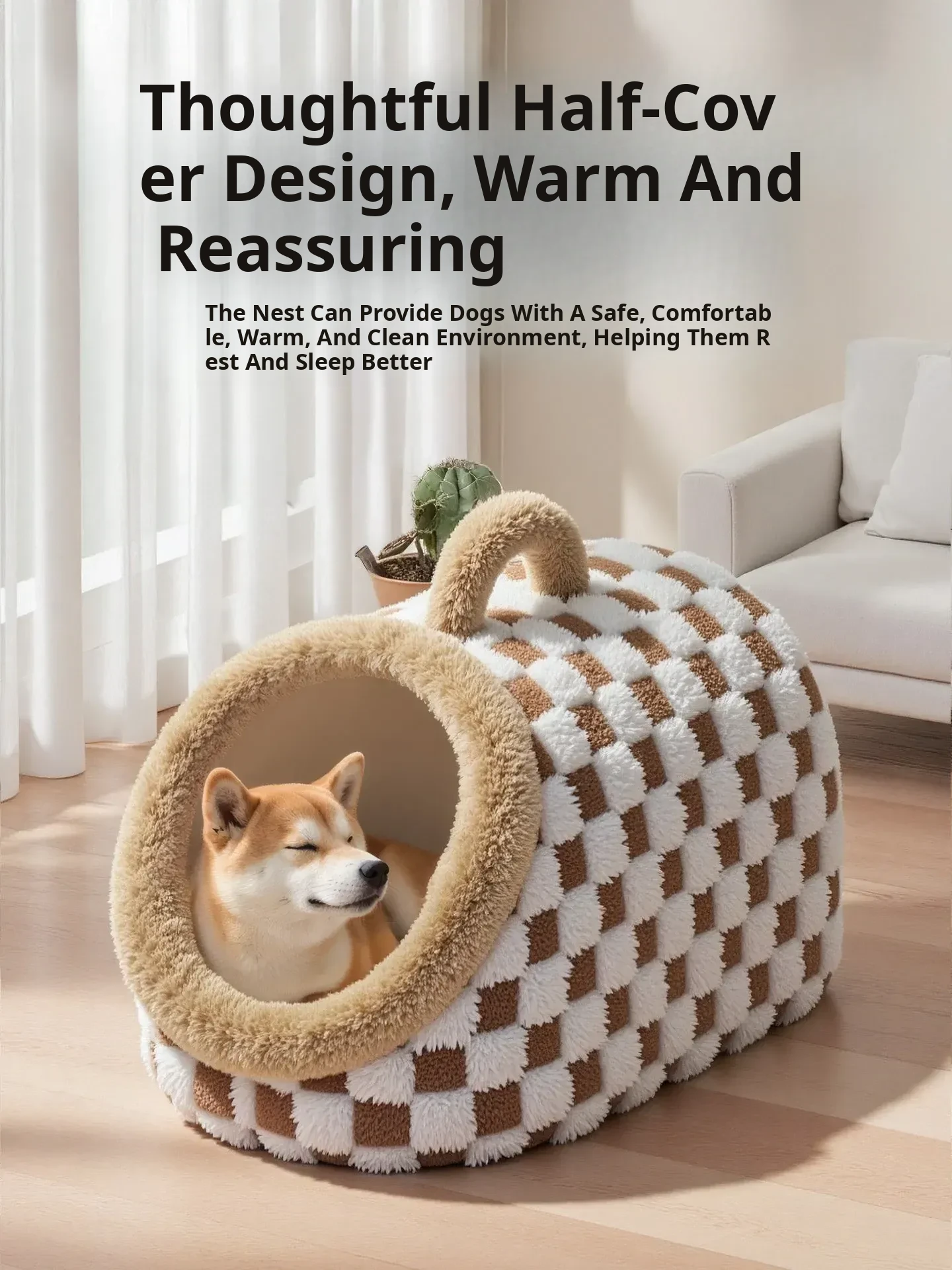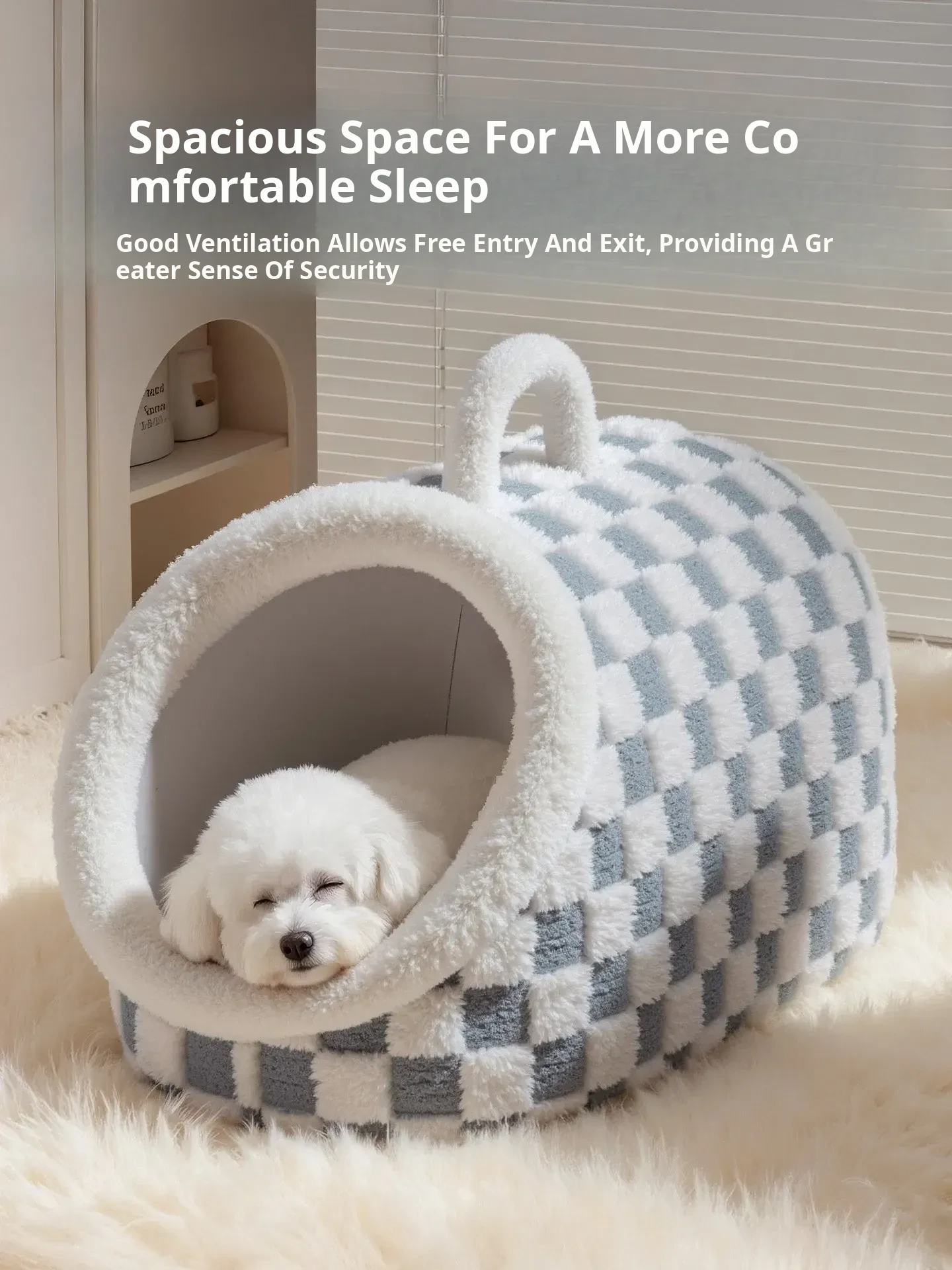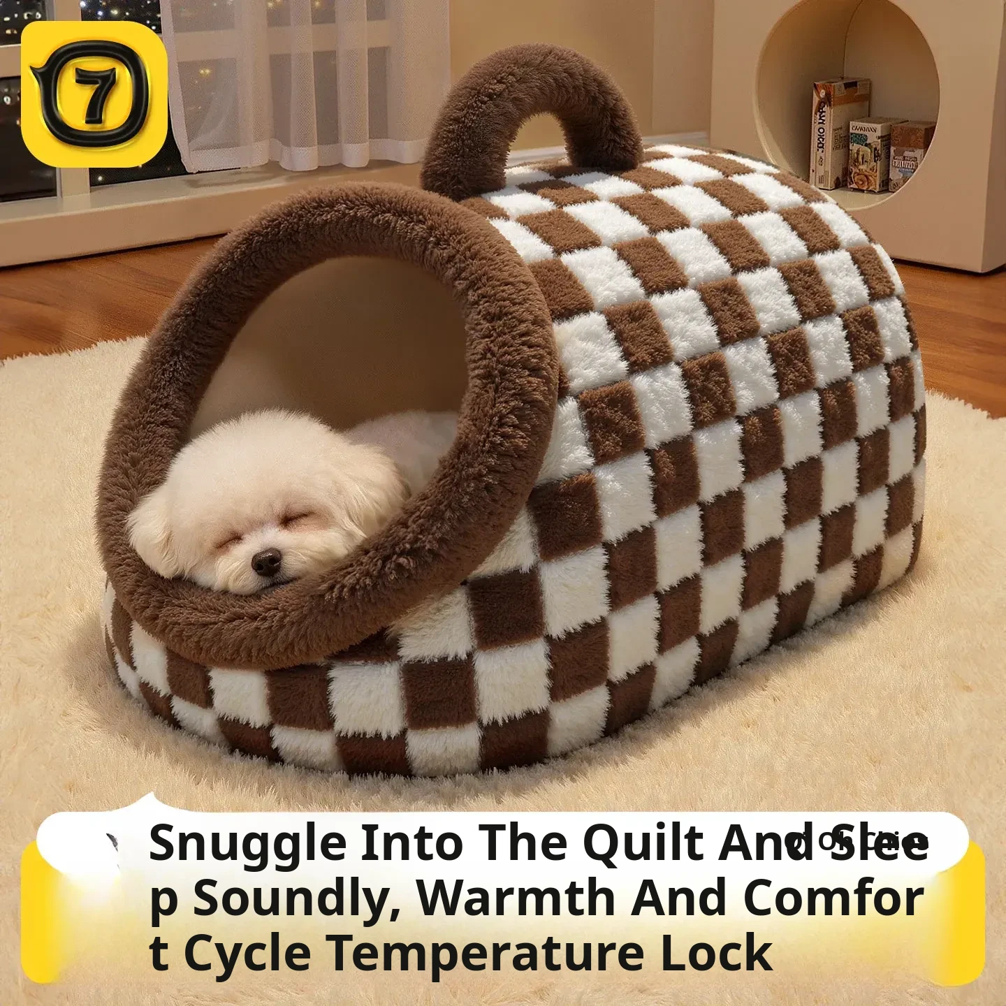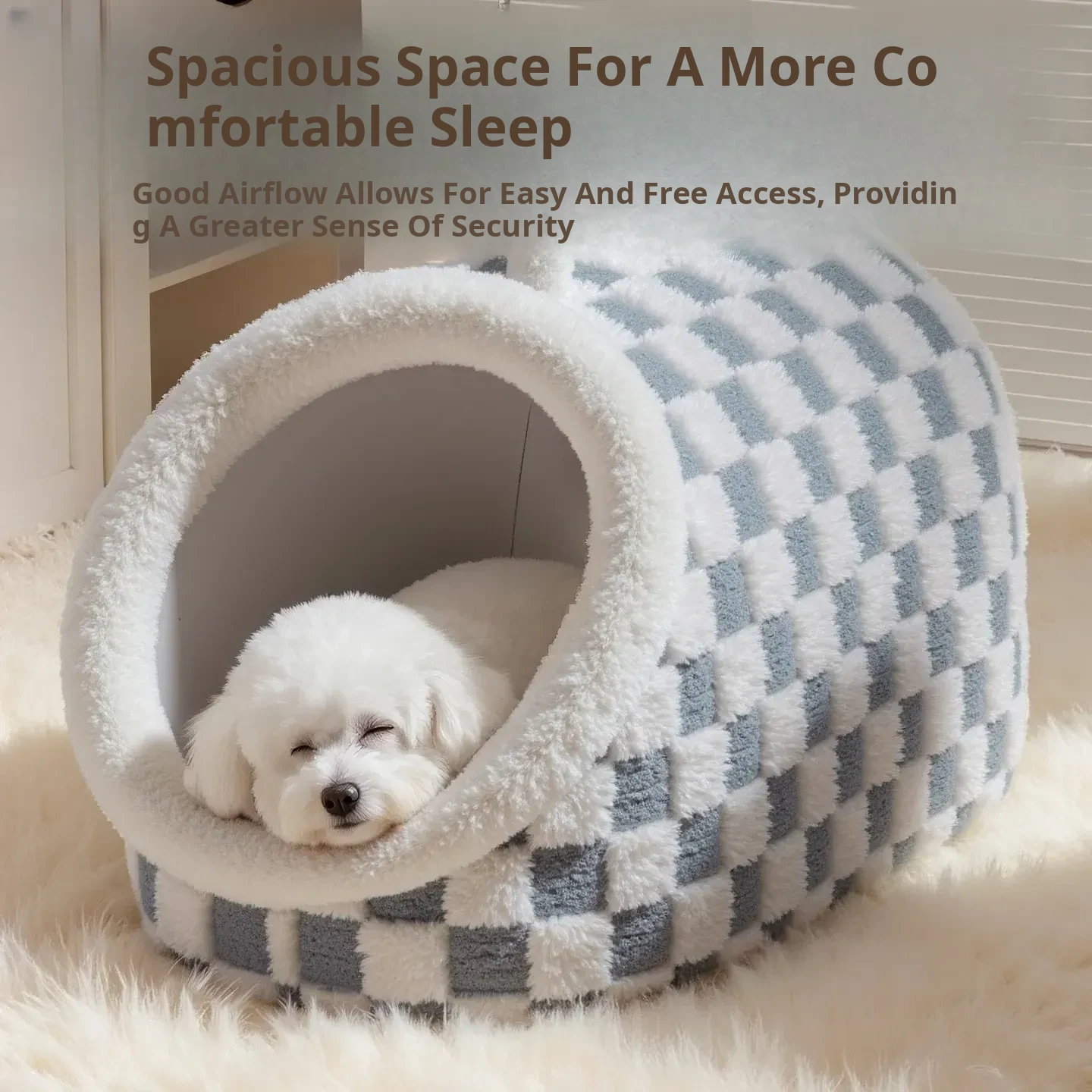 Cozy Winter Cat Bed - Thickened Lantern Fish Design for Kittens, Enclosed Warm Sleeping Nook, Semi-Closed for Extra Security and Comfort