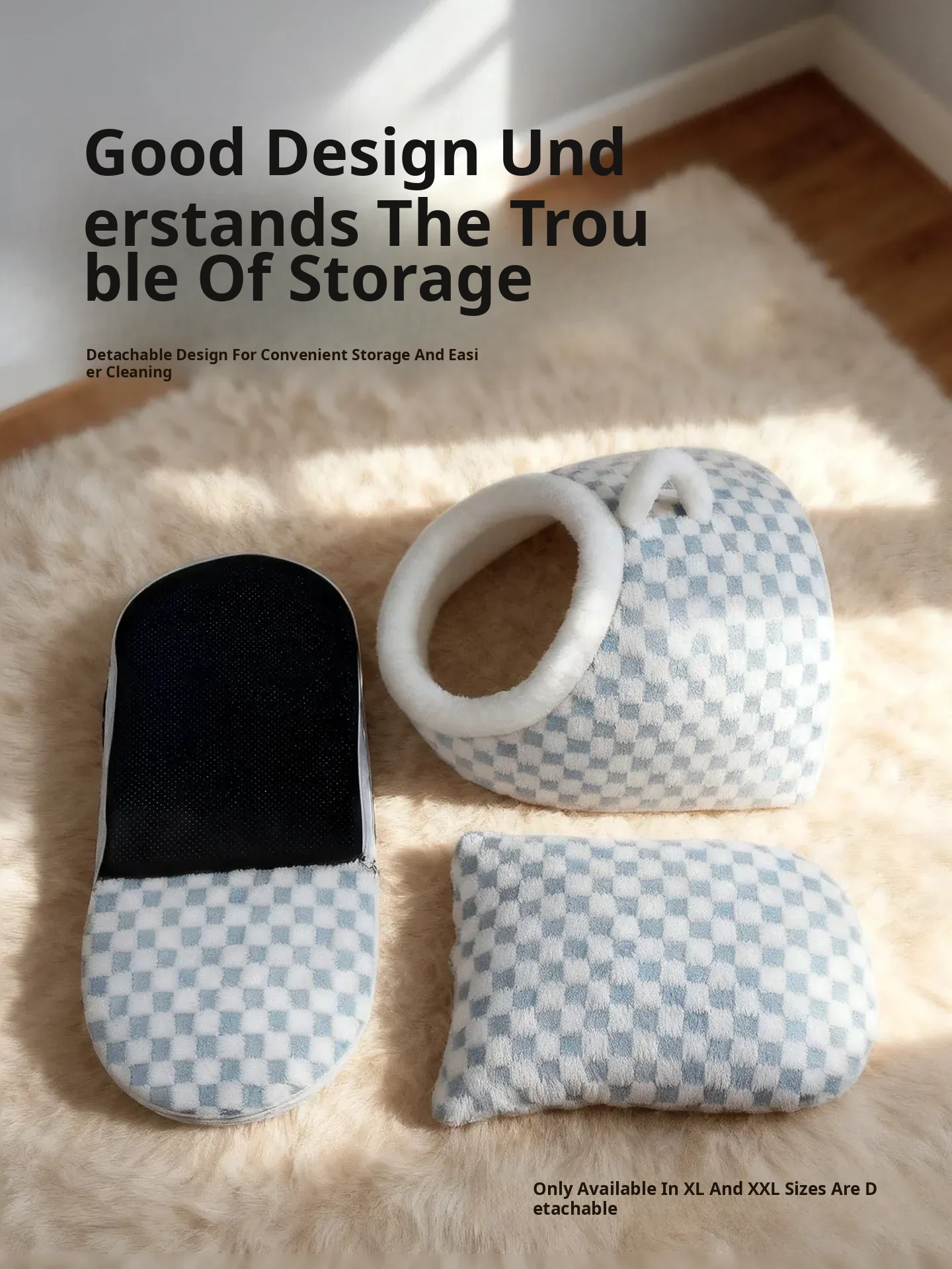 Cloud Water Blue - Checkerboard Tote Bed [Extra Large & Thick, Won'T Collapse]