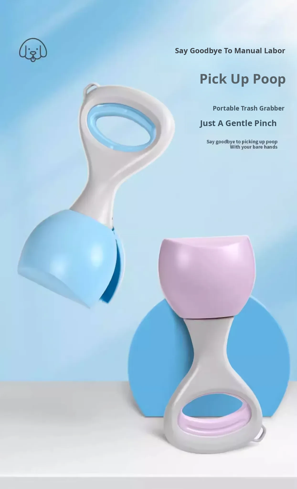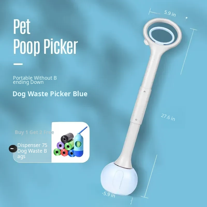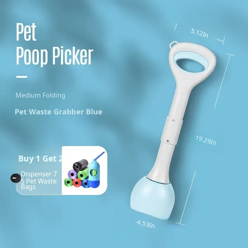 【Upgraded】Blue Poop Scooper with Retractable Handle, Control Button + 45 Waste Bags