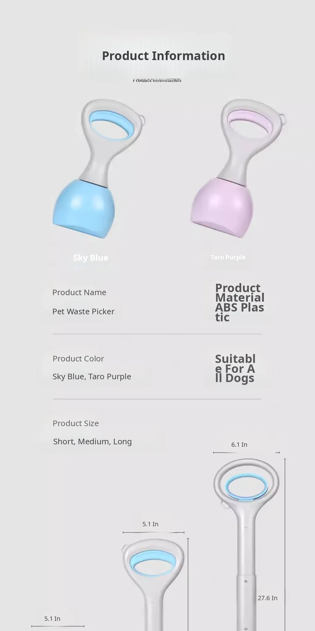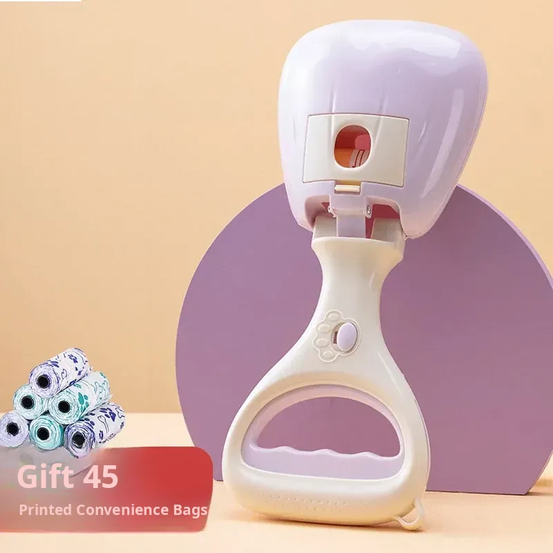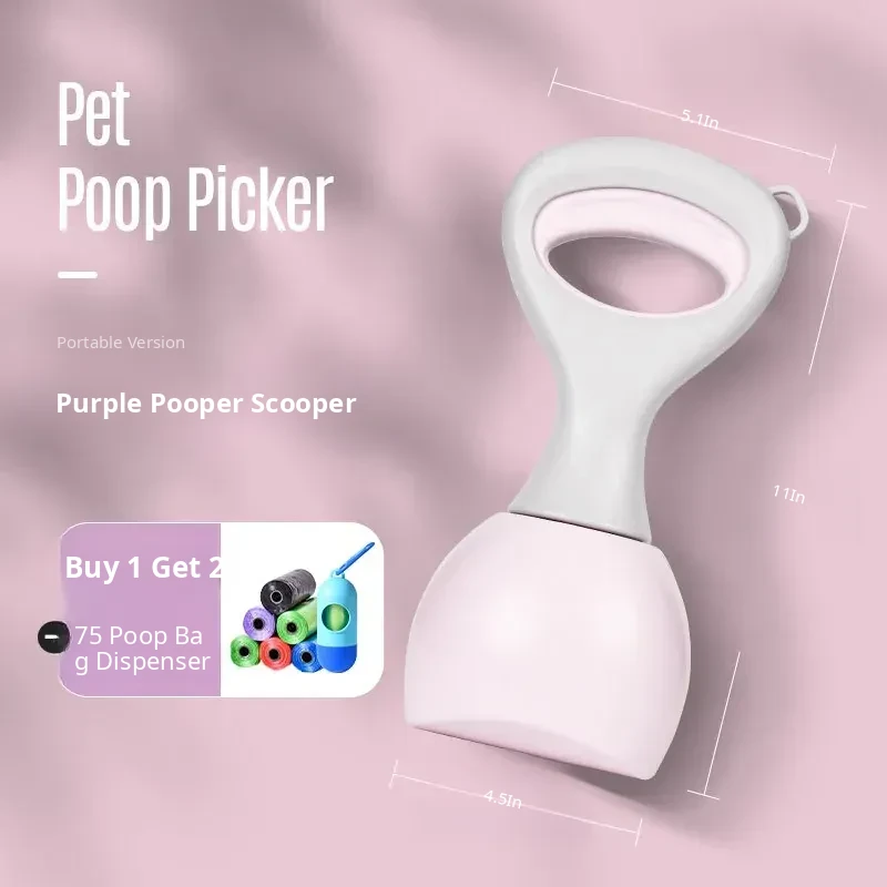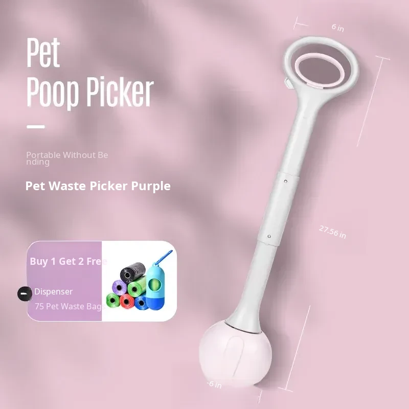 【Upgrade】Purple Poop Scooper with Retractable Leash, Control Button, and 45 Waste Bags