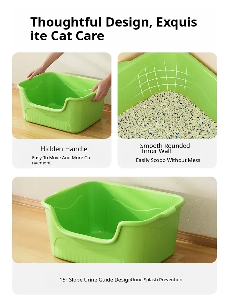 Extra Large Cat Litter Box - Splash-Proof, Odor-Resistant Open Design for Easy Cleanup - The Ultimate Cat Toilet Solution for Your Feline Friend