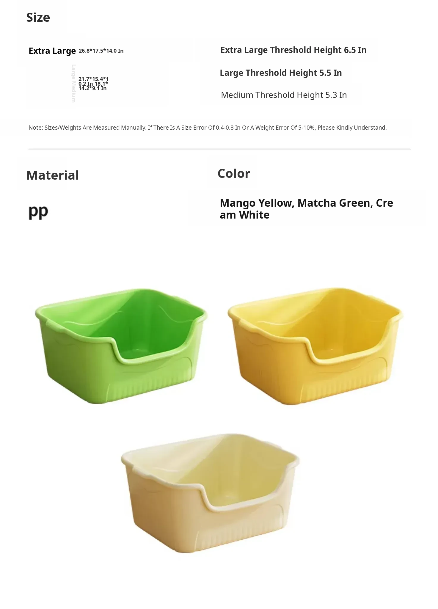 Jumbo Cream White Cat Litter Box with Scoop, Perfect for Multi-Cat Households