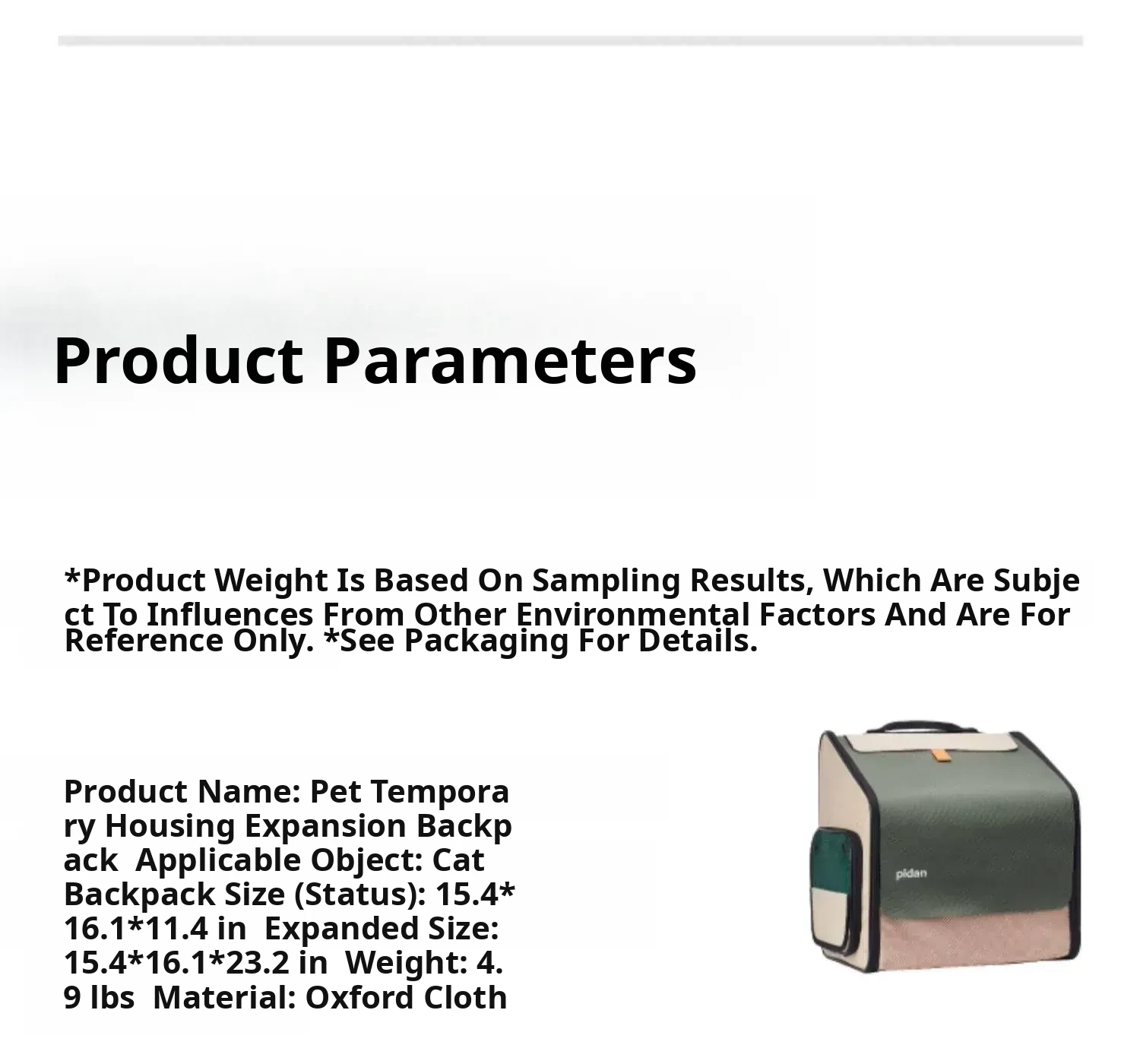pidan Expandable Pet Backpack - Spacious and Portable Cat Carrier for Outdoor Adventures, Perfect for Cats and Small Pets