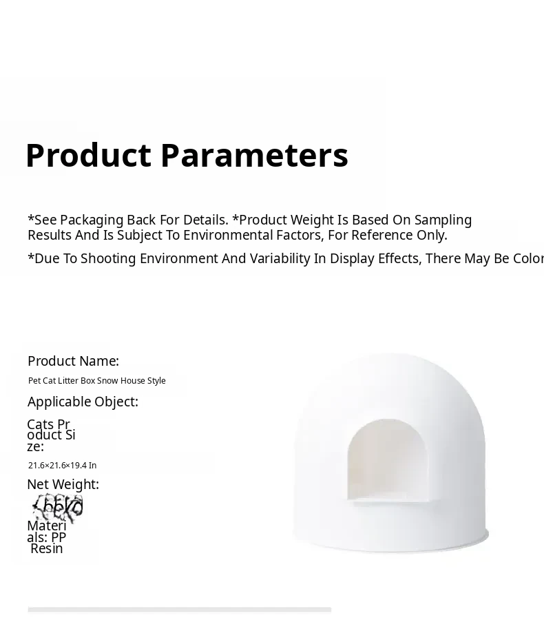 pidan Snow House Cat Litter Box - Semi-Enclosed Large Cat Litter Tray, Splash-Proof and Odor-Blocking, Perfect for Your Feline Friend's Comfort and Cleanliness