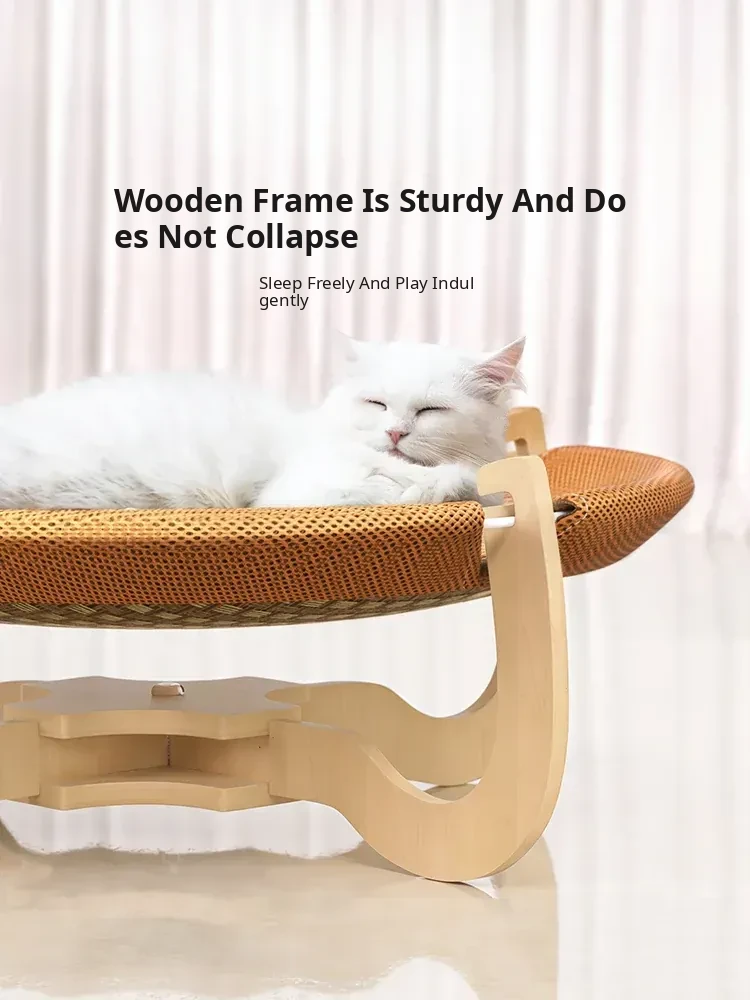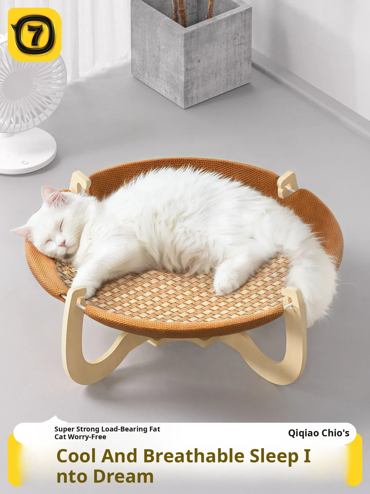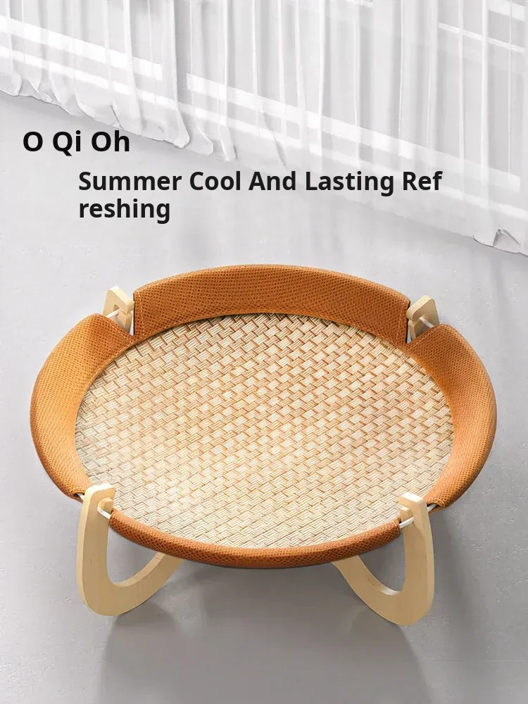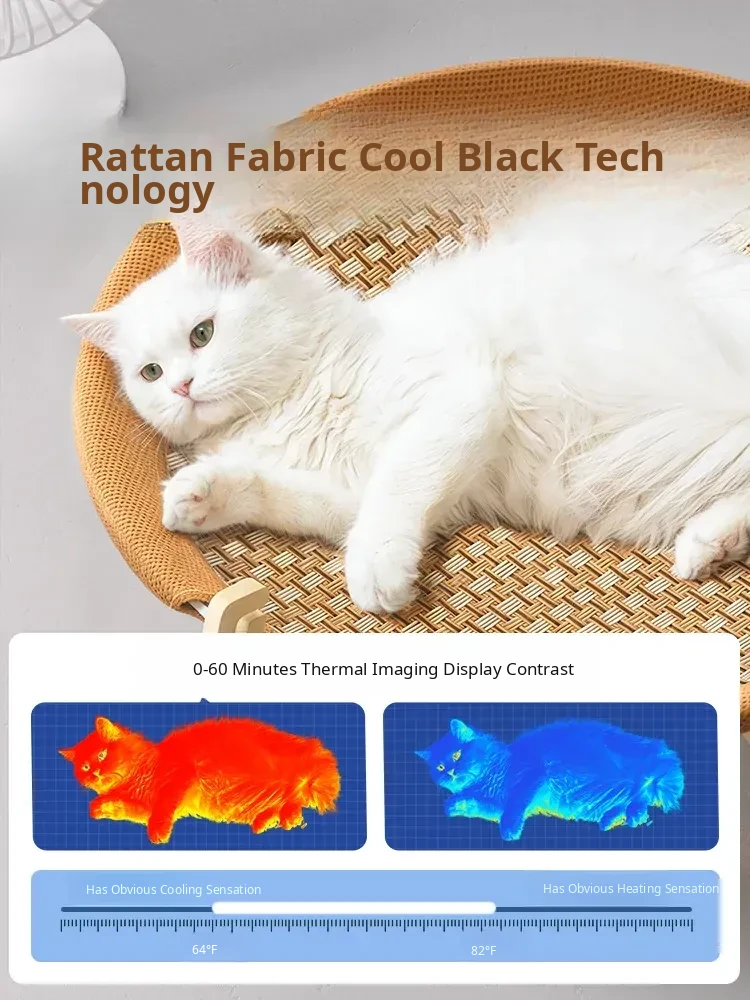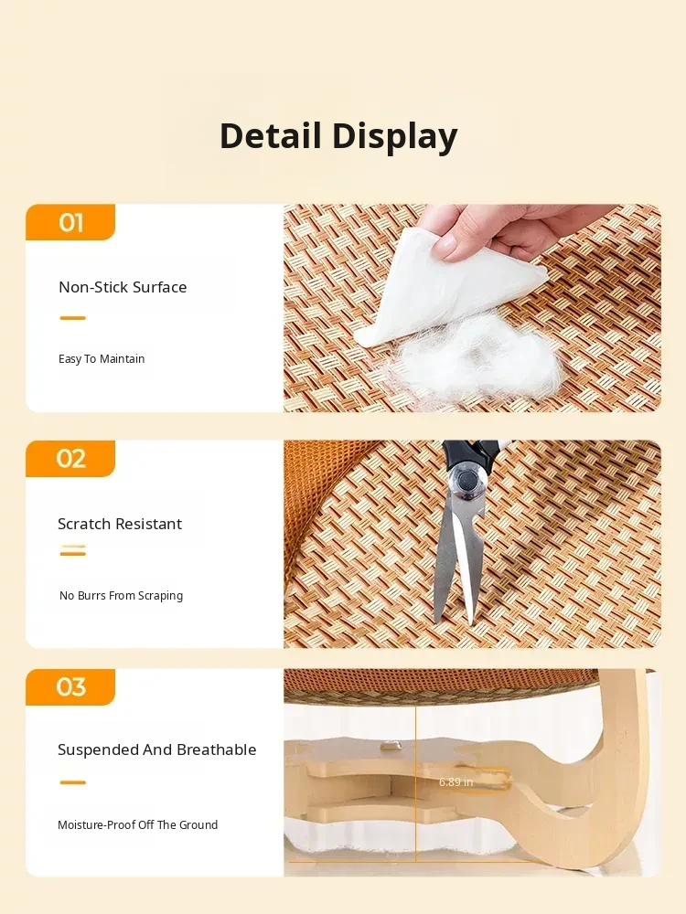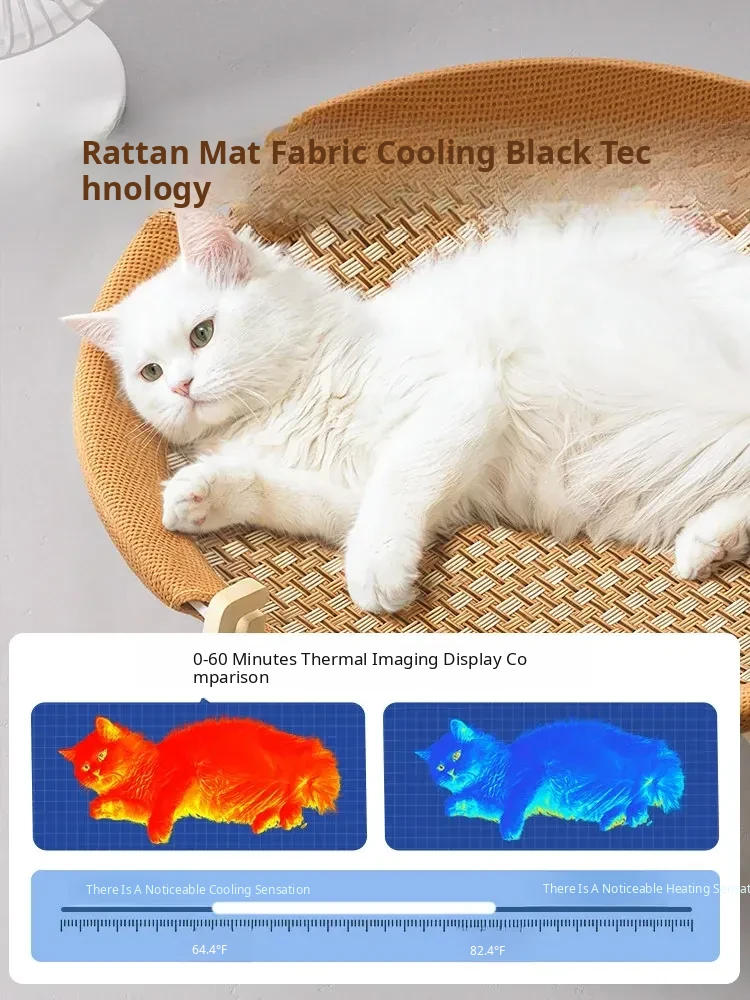 Summer Hanging Cat Bed - Versatile Rattan Cat Nest for All Seasons, Perfect for Kittens and Small Cats, Comfortable Cool Mat for Summer, Ideal Pet Camping Bed