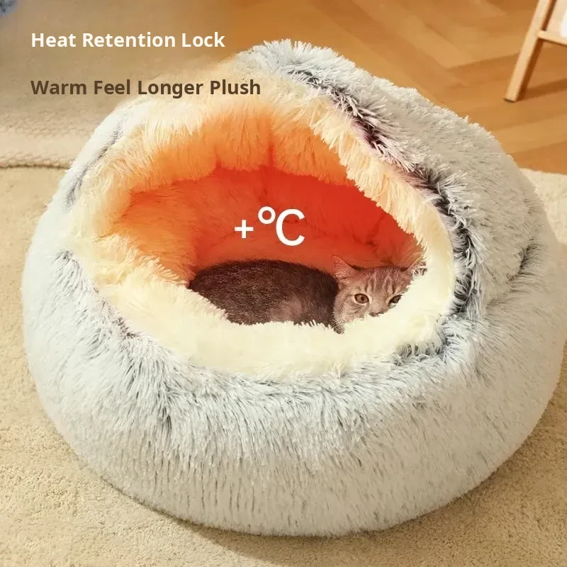 2025 New Thickened Winter Cat Bed - Semi-Enclosed Design for Extra Warmth & Comfort, Ideal for Kittens and Small Dogs, Enhanced Safety & Spaciousness for Cozy Winter Naps
