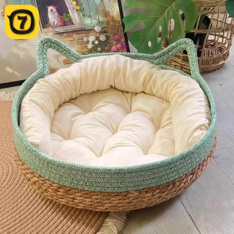 Handcrafted Natural Jute Cat Bed - Year-Round Comfort for Kittens and Cats, Breathable for Summer and Cozy for Winter, Safe and Stylish Weaving Cat Accessories
