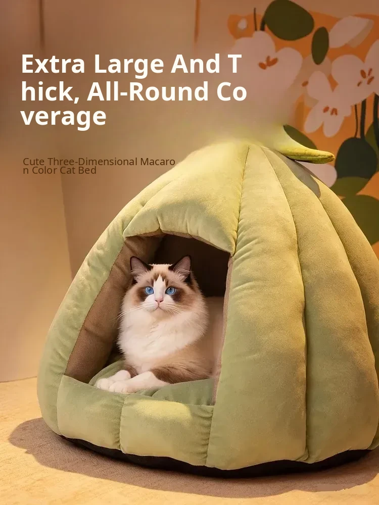 Thickened Semi-Closed Winter Cat Bed - Cozy & Warm Sleeping Haven for Cats, Perfect for Winter Security & Comfort - Stylish Hideaway for Cats and Dogs!