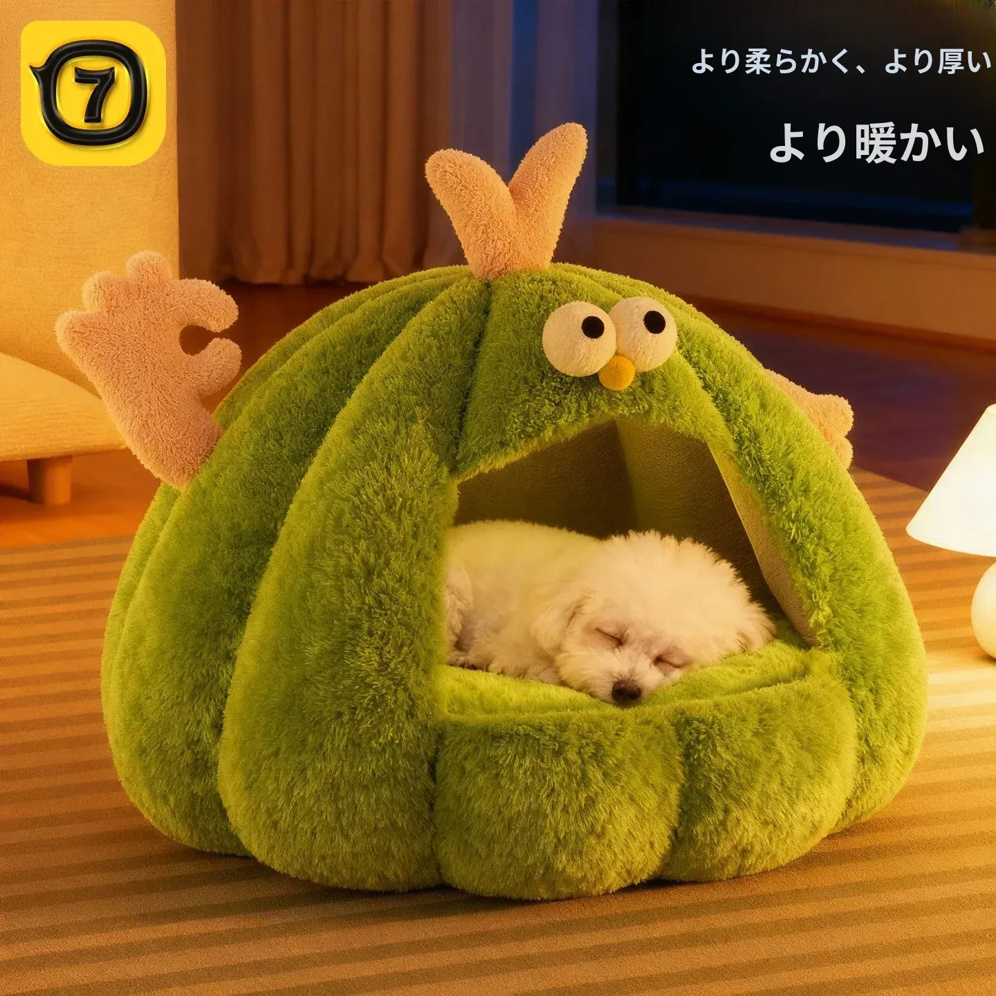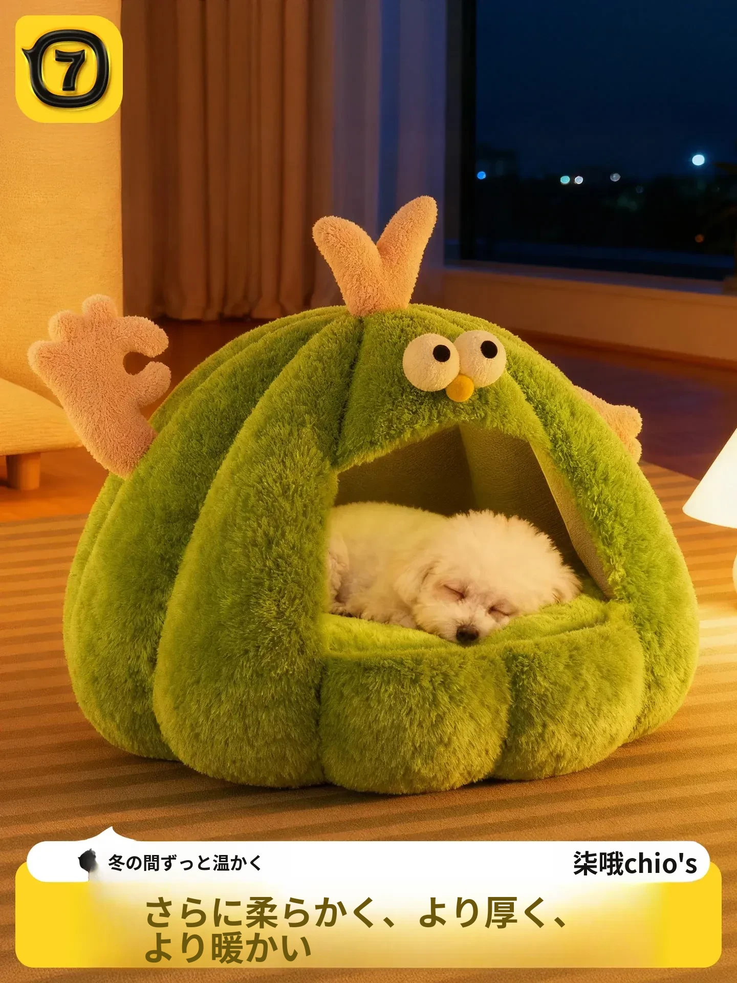 2025年新作!冬用厚手宠物ベッド、ふわふわの半密閉式デザインで子犬も安心!暖かくて快適な隠れ家、愛犬との特別な時間をお届けします。
