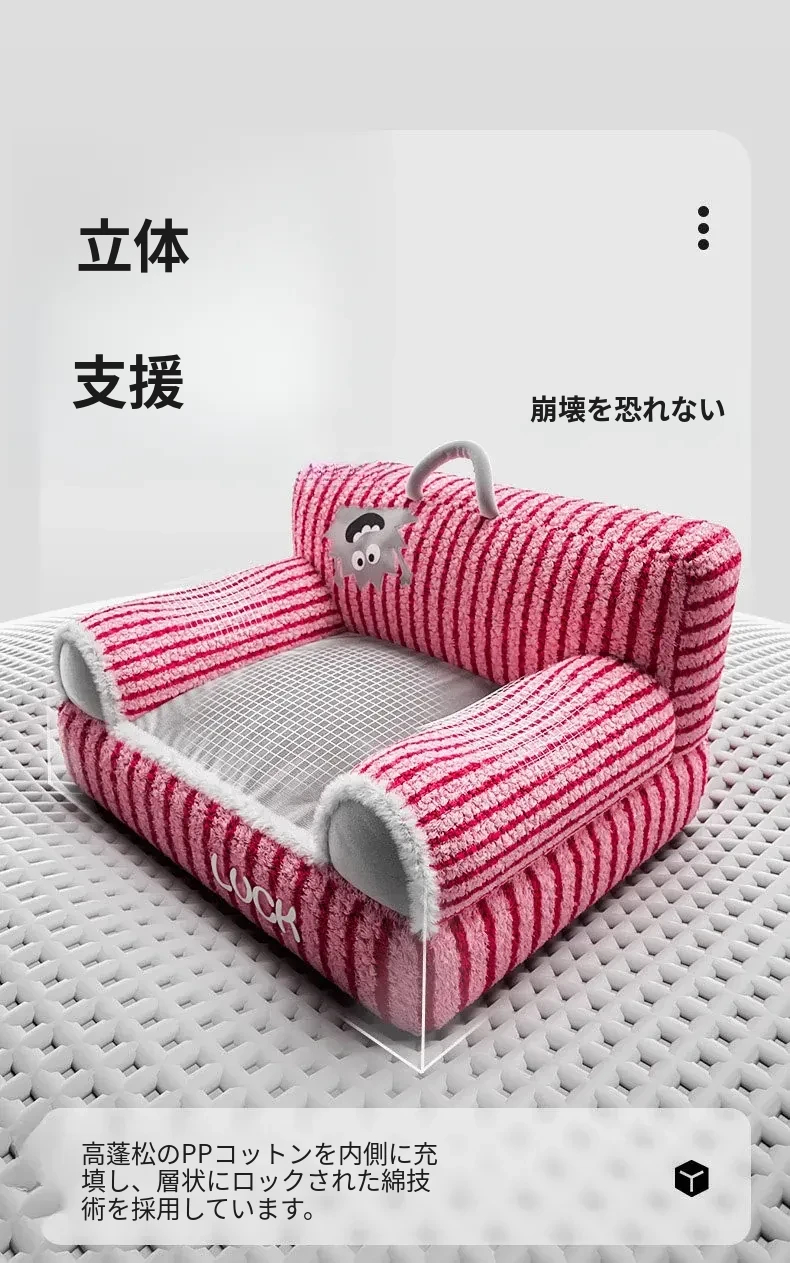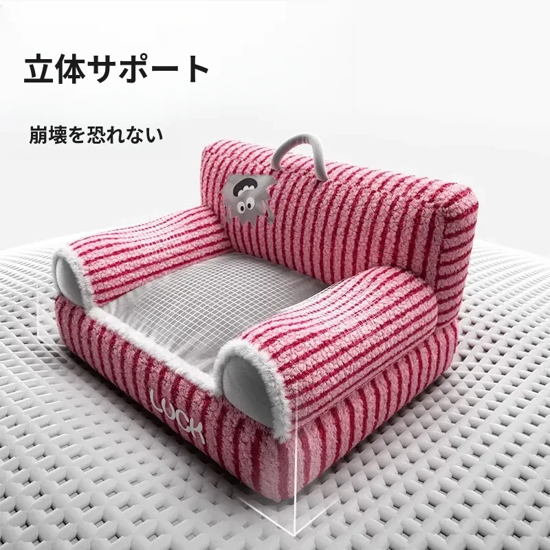 四季使えるオープン型猫ベッド|冬の暖かさを提供!安全で安心なペットシェルター|愛猫の快適な睡眠をサポートするソファ型ペット用品