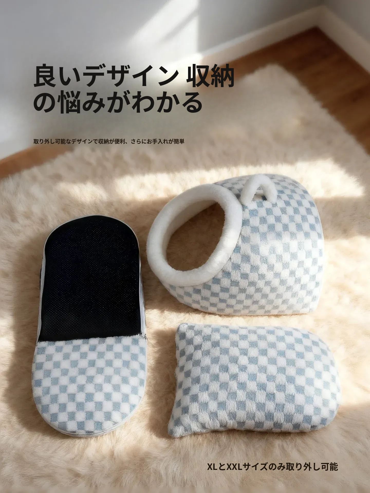 ラテブラウン-チェック柄バッグハウス 【厚手で保温・超大容量】