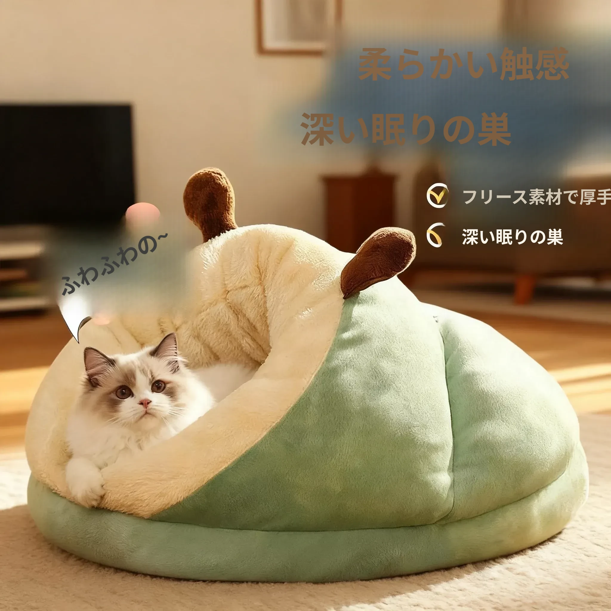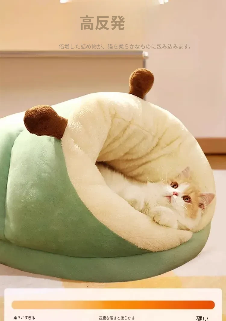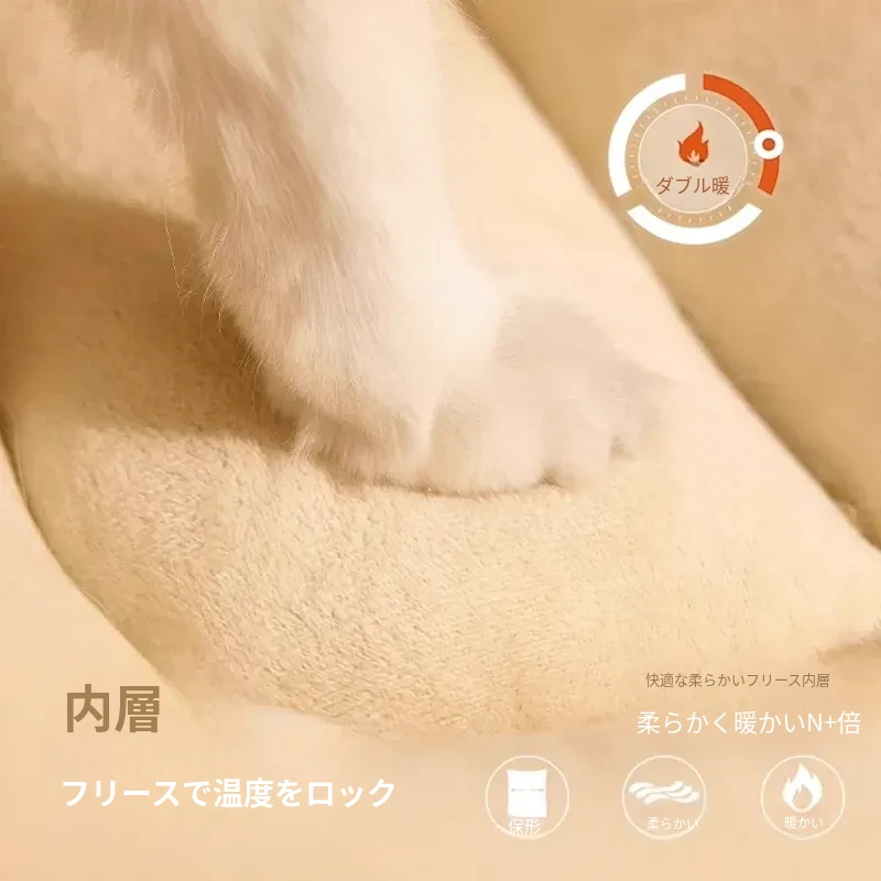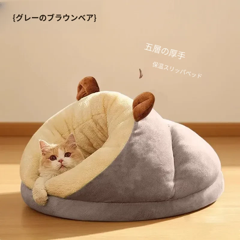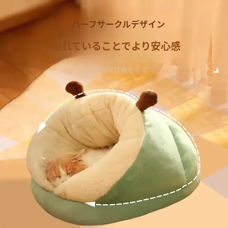 冬の寒さから愛猫を守る!厚手で半封閉式の安全感あふれる猫ハウス・犬用寝床。ペットが快適に過ごせる暖かい空間を提供します。