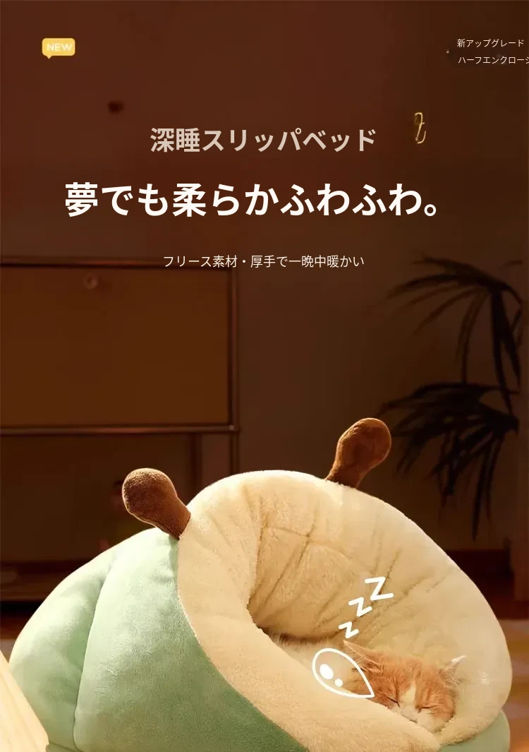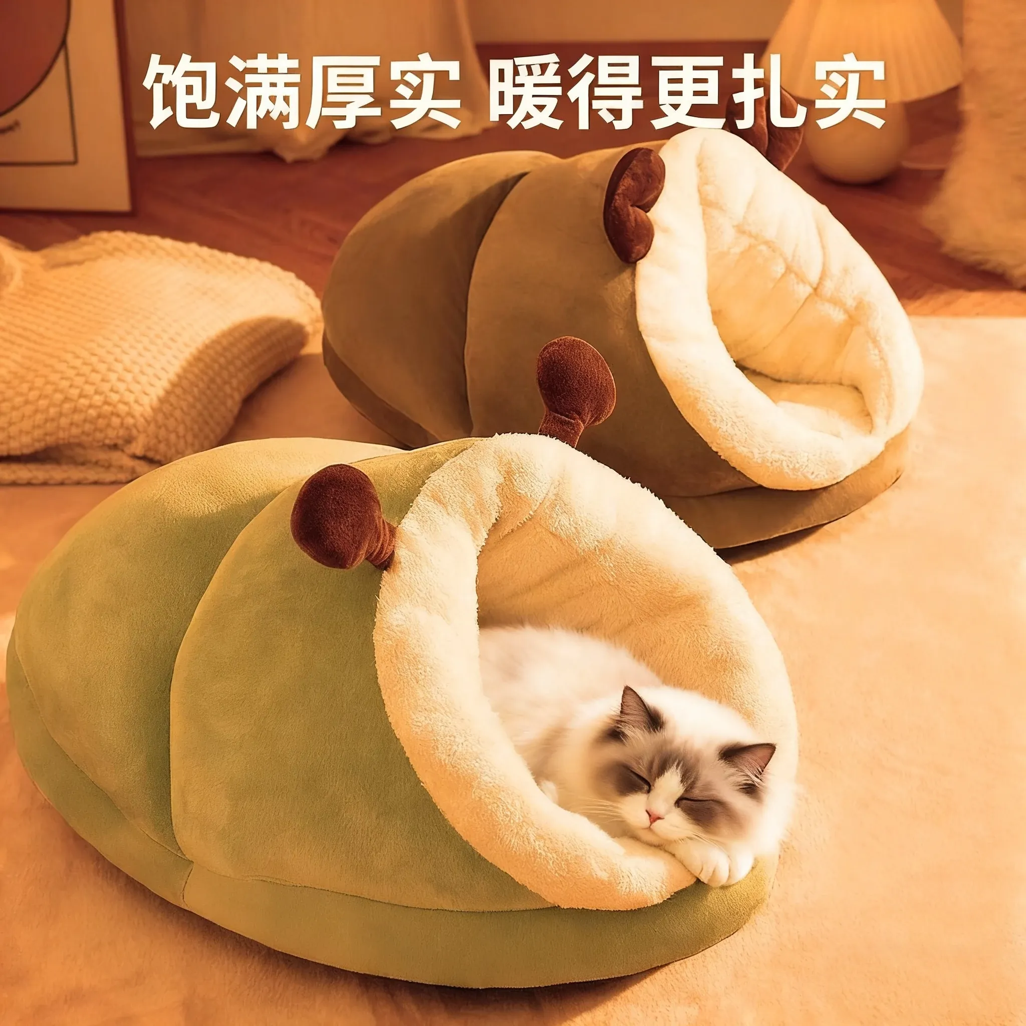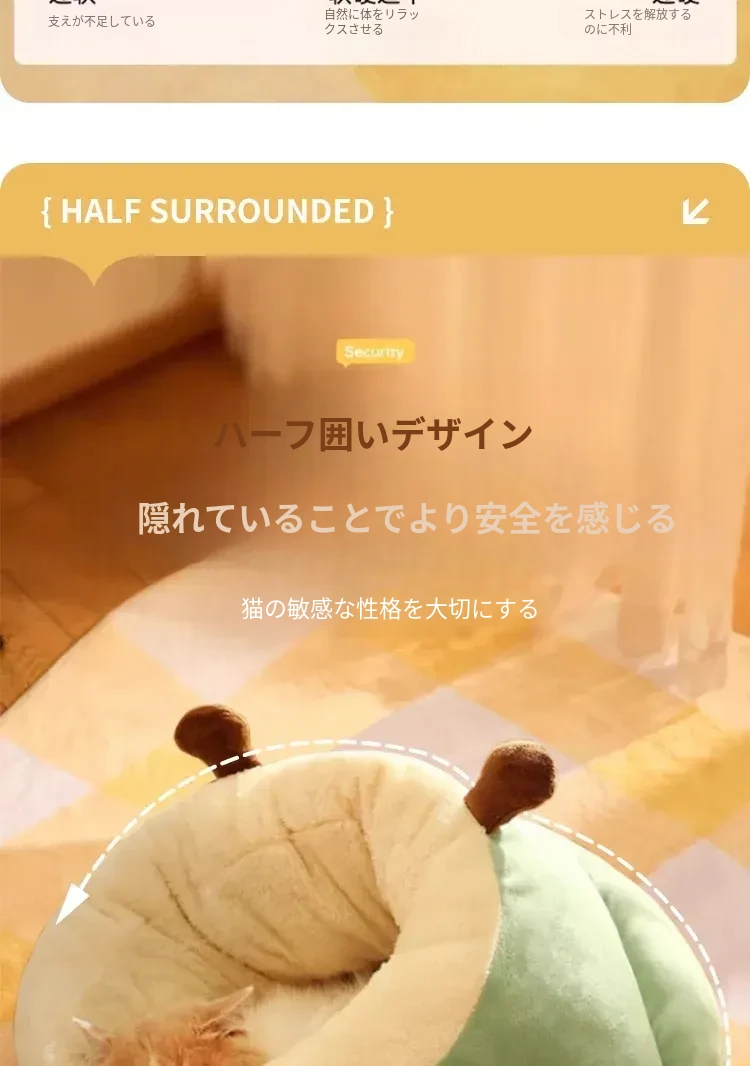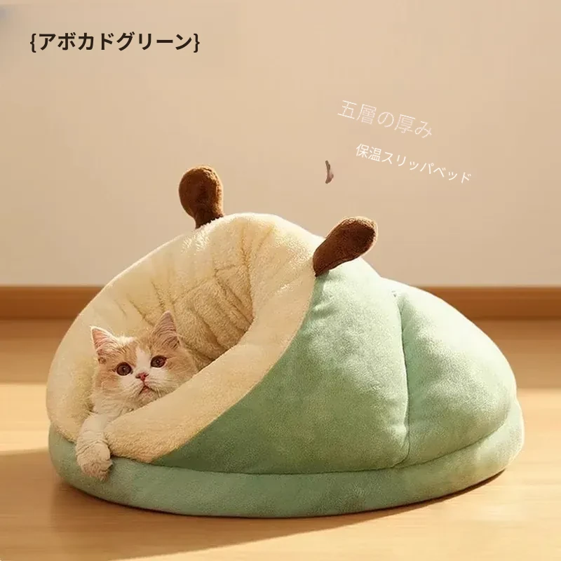 冬の寒さから愛猫を守る!厚手で半封閉式の安全感あふれる猫ハウス・犬用寝床。ペットが快適に過ごせる暖かい空間を提供します。