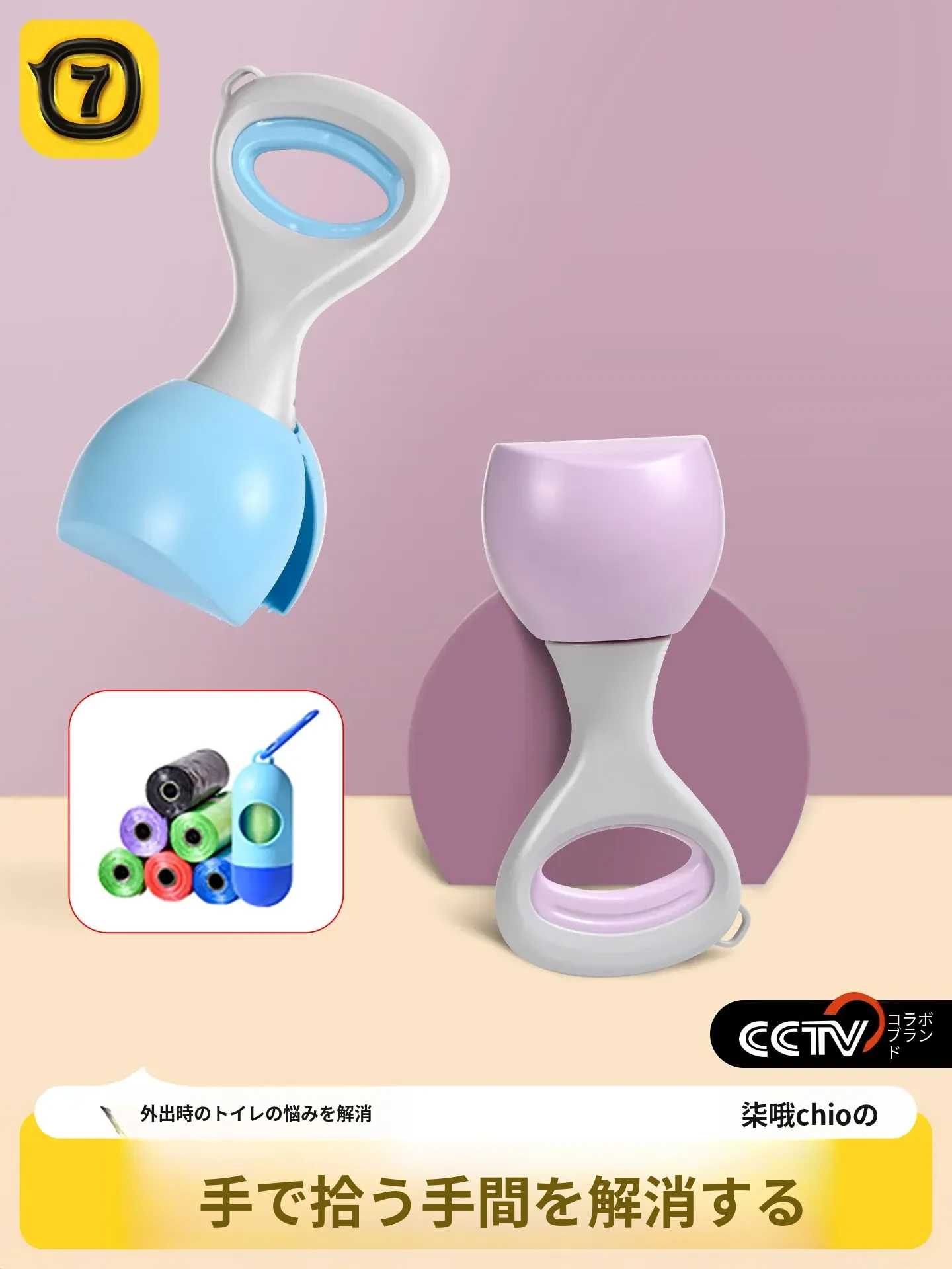 【ロング折りたたみモデル】貝殻紫【75個の拾い袋+ディスペンサー付き】