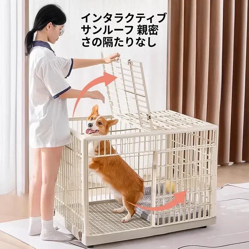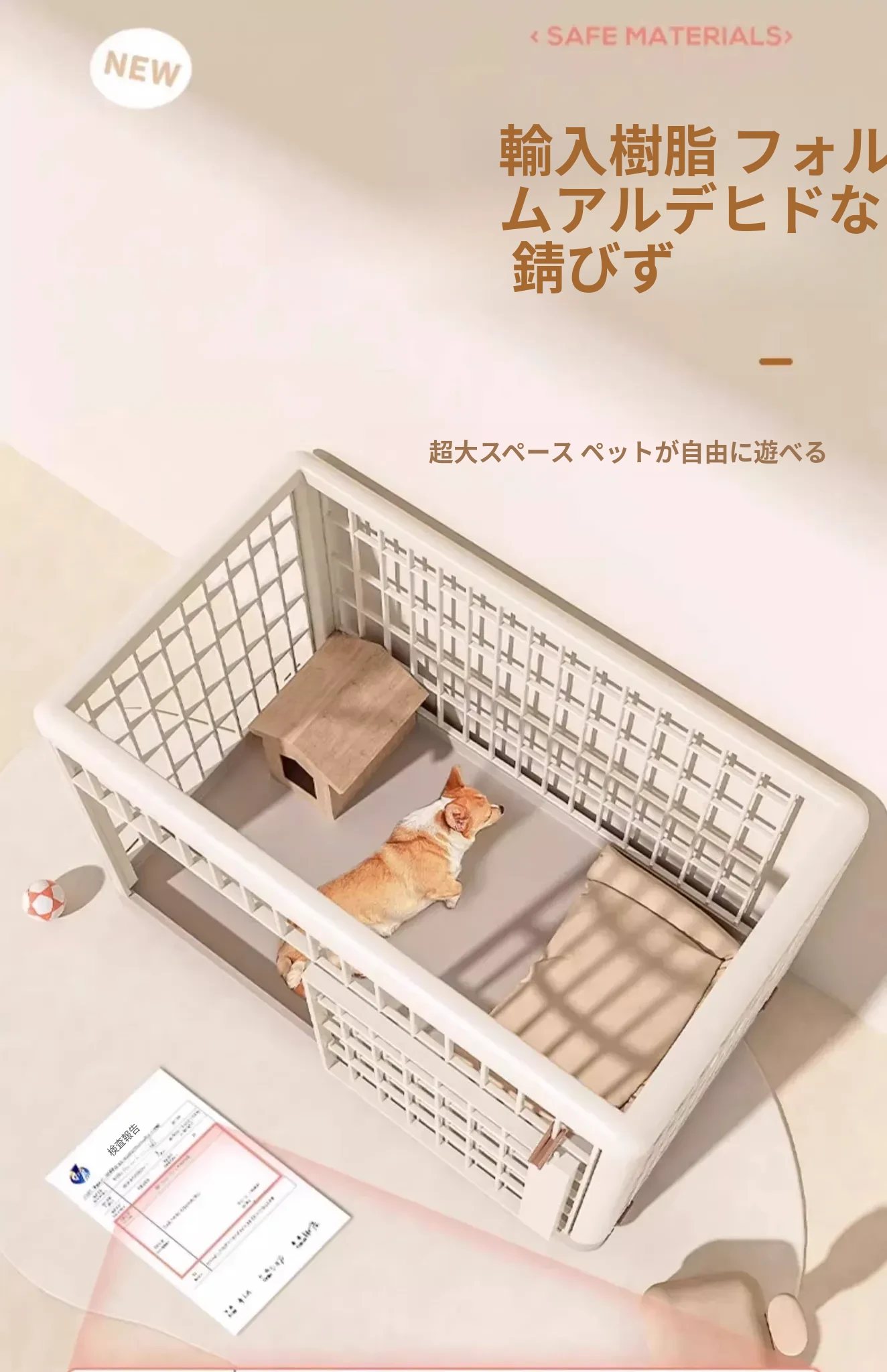 中型犬や小型犬に最適!頑丈な樹脂製のペットケージ・フェンス。テディベアや小犬のための快適な室内ヴィラ。厚みがあり、安心して使えるペット用ケージ!