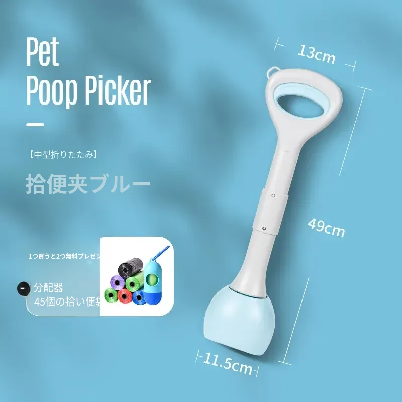 【新作中長折りたたみ】49cm青色(45個の拾便袋+ディスペンサー付き)