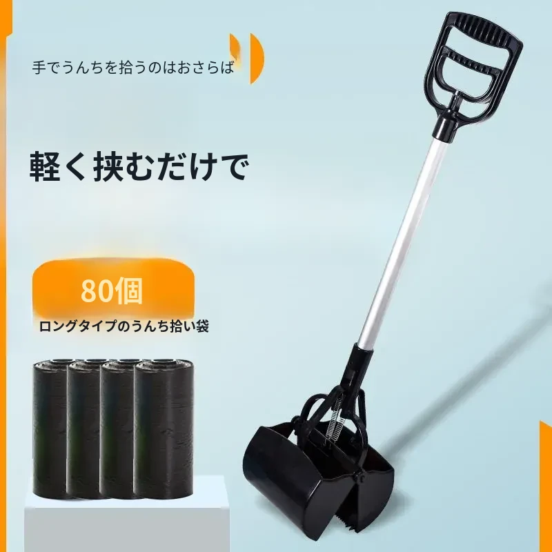 【19%の人が選択】70cmアルミ合金ロングハンドル+80個のロング拾便袋付き