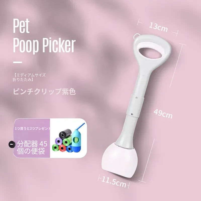 【新作中長折りたたみ】49cm紫色(45個の拾便袋+ディスペンサー付き)