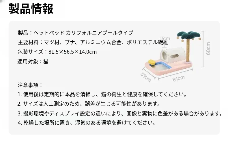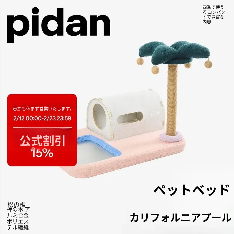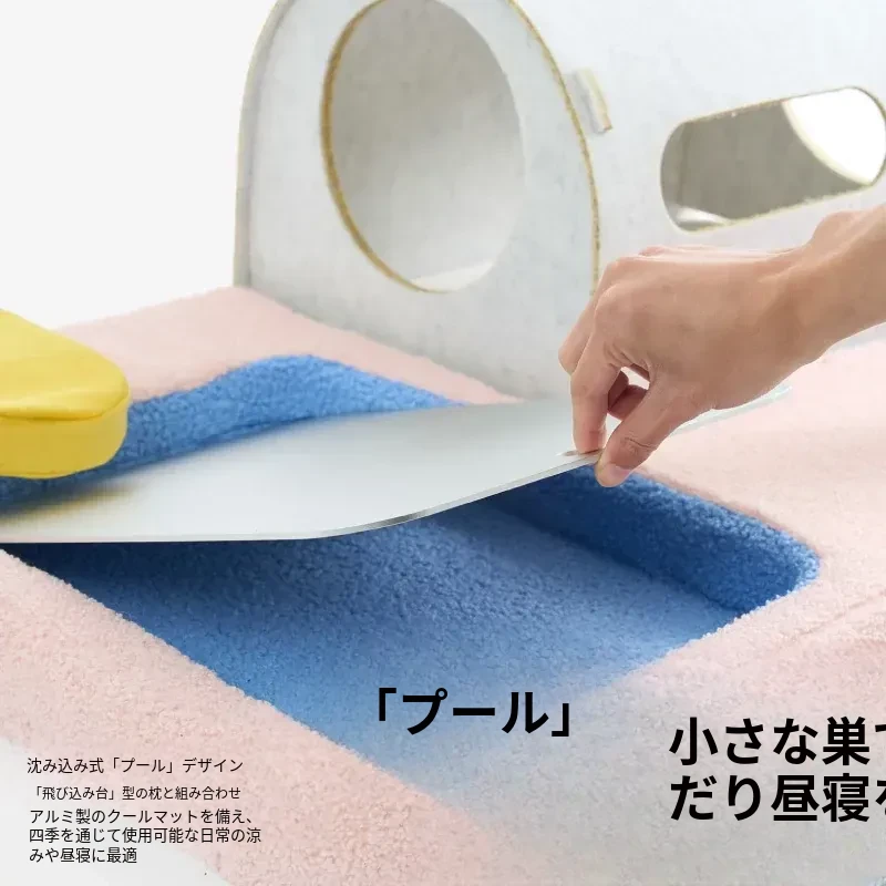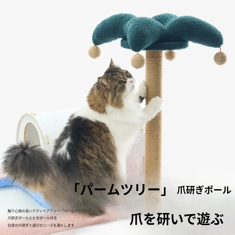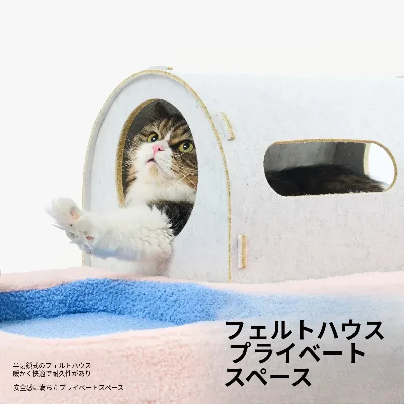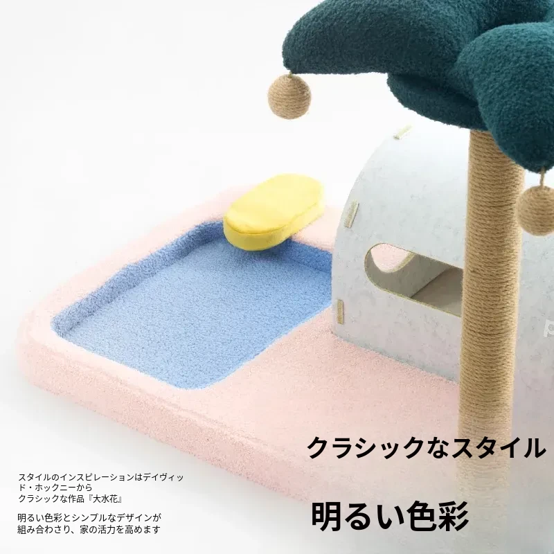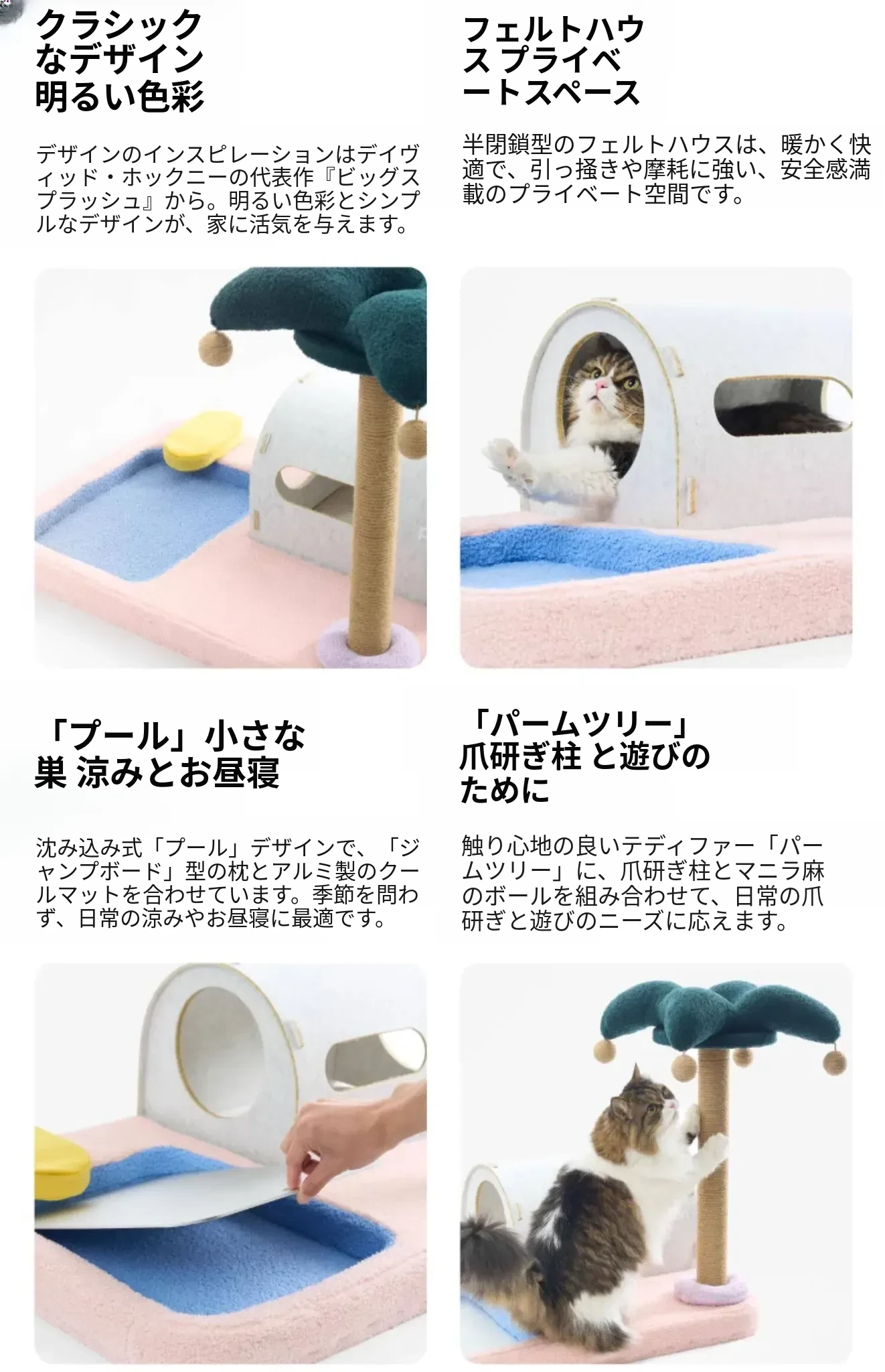 pidanペットハウス カリフォルニアプールスタイル キャットハウス&爪研ぎポール 毛布付き小屋 ペット用品 猫ちゃんの快適な隠れ家【おしゃれ&機能性抜群】