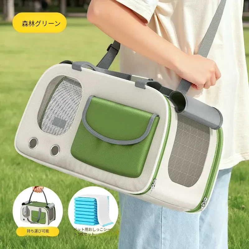 フォレストグリーン❤ショルダー/ハンド/クロスボディ【多面透気性アップ、ストレス軽減カーテン、太った猫も安心】
