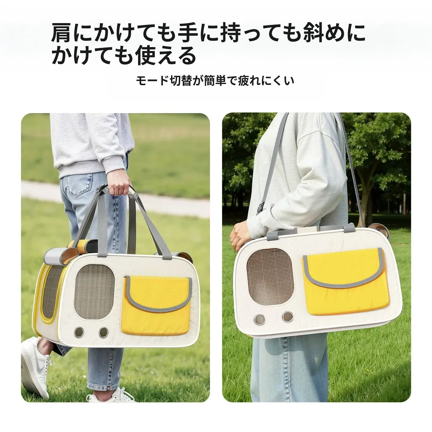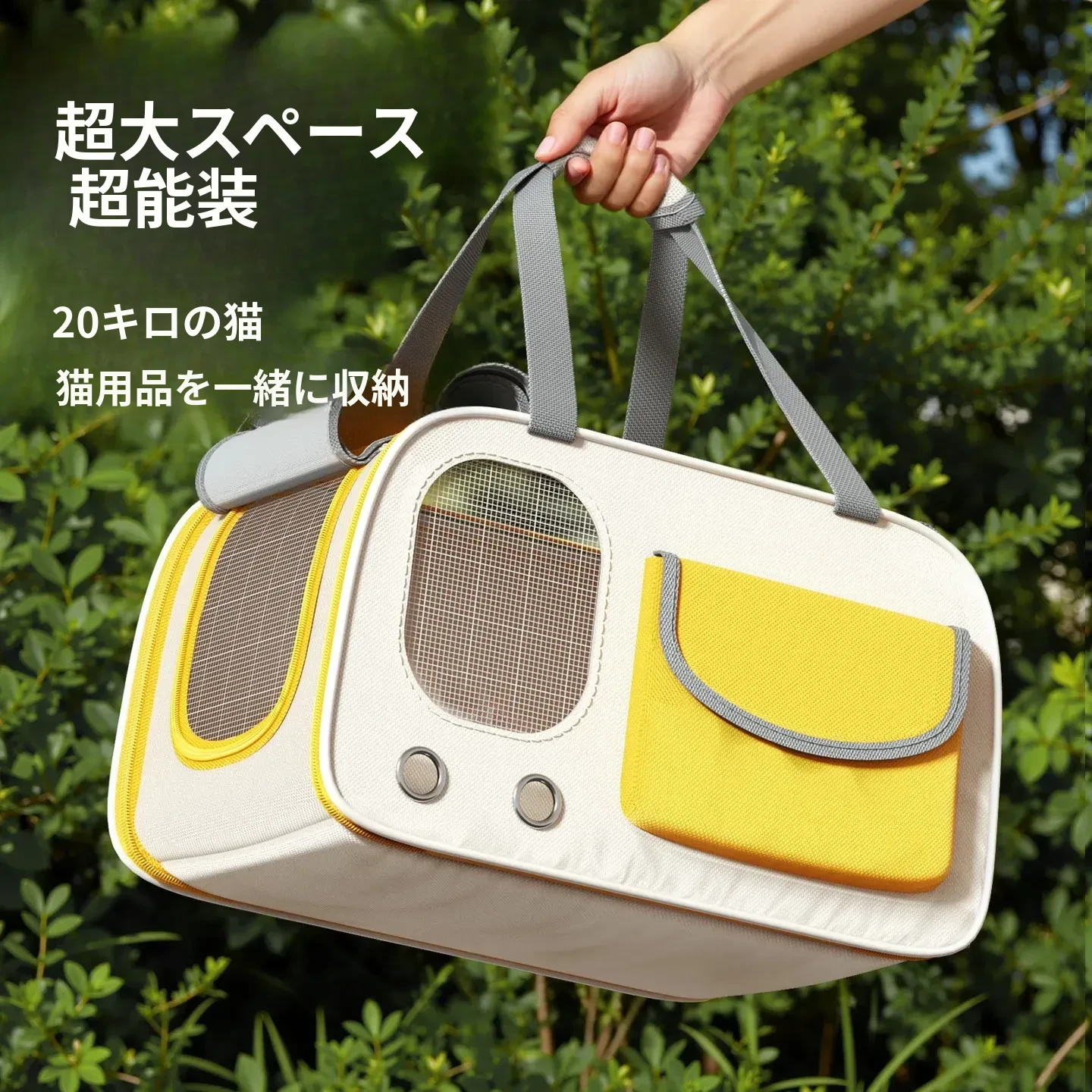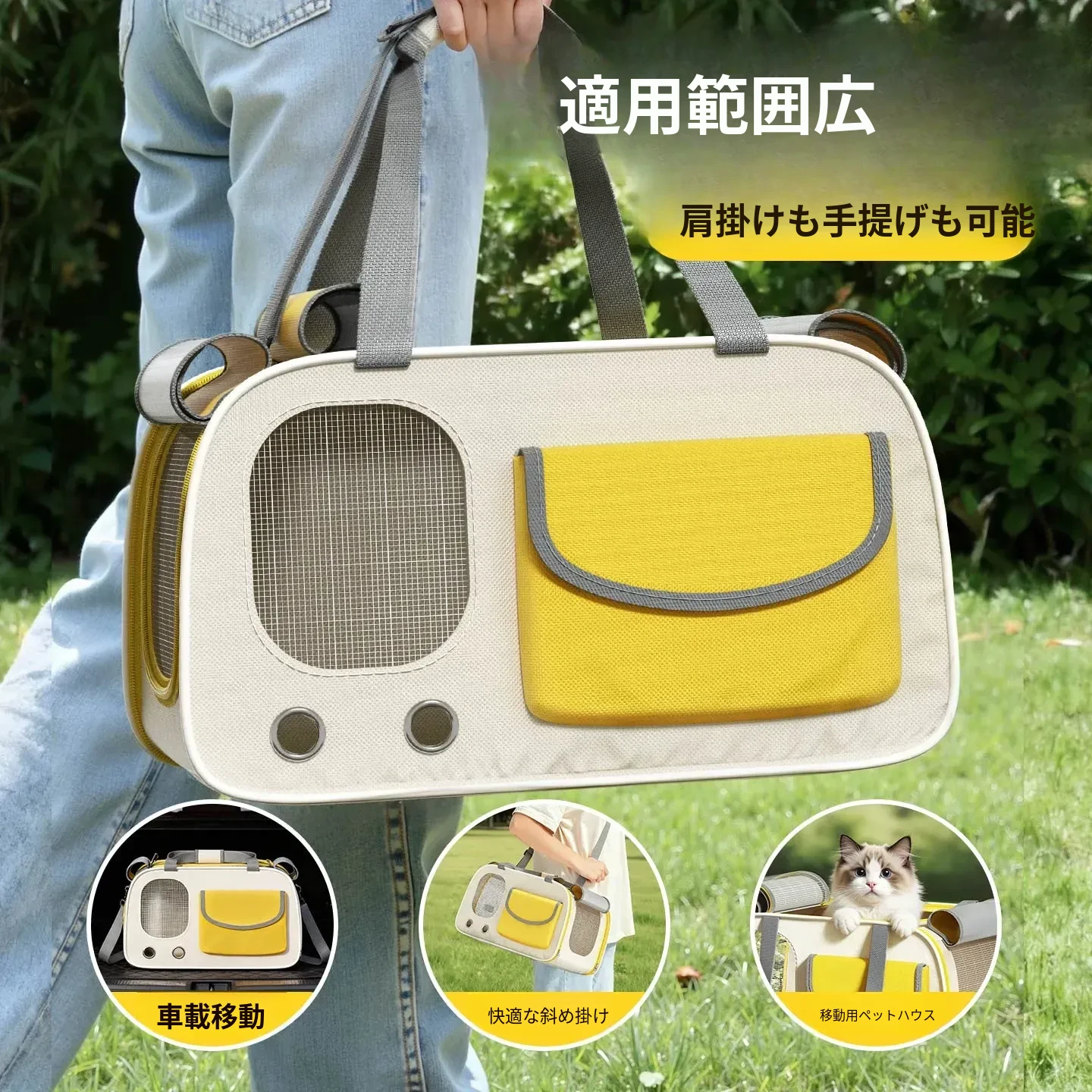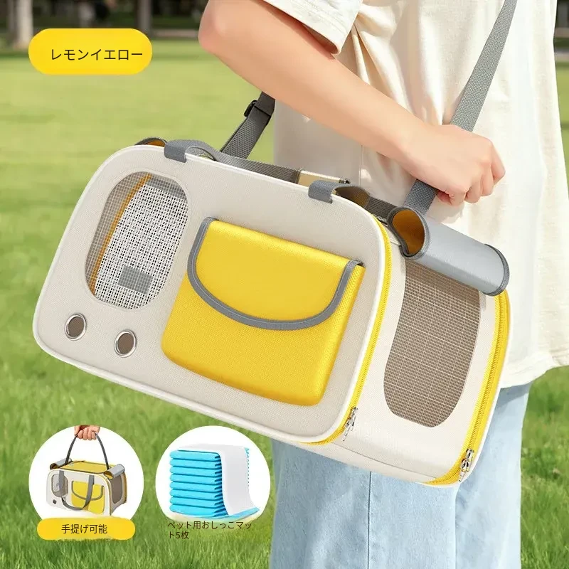 レモンイエロー❤ショルダー/ハンド/クロスボディ【多面透気性アップ、ストレス軽減カーテン、太った猫も安心】