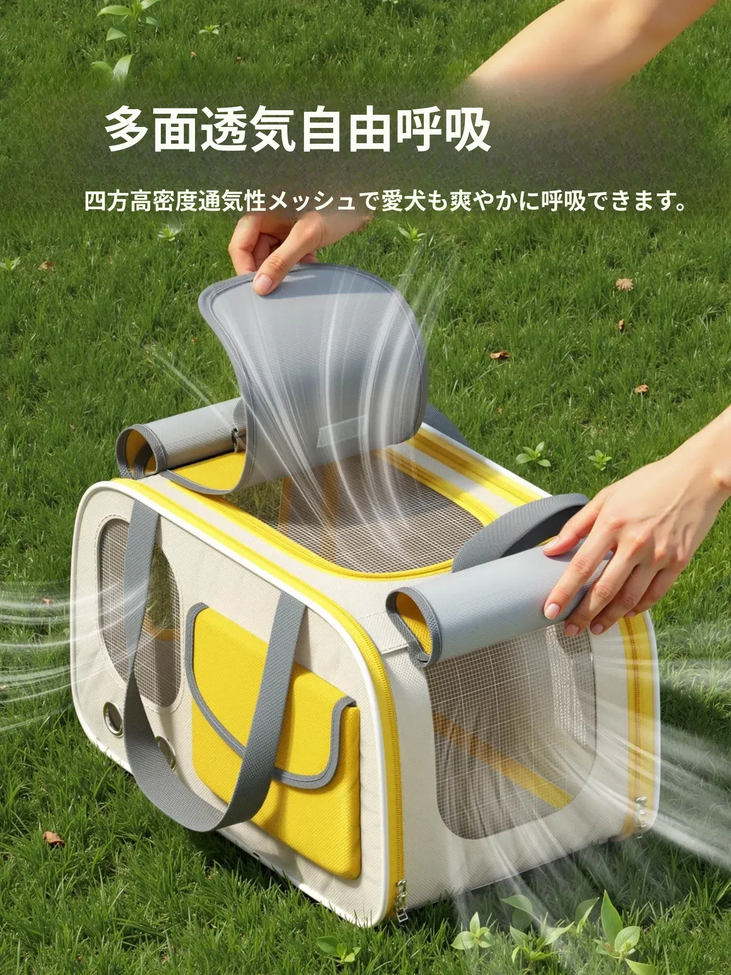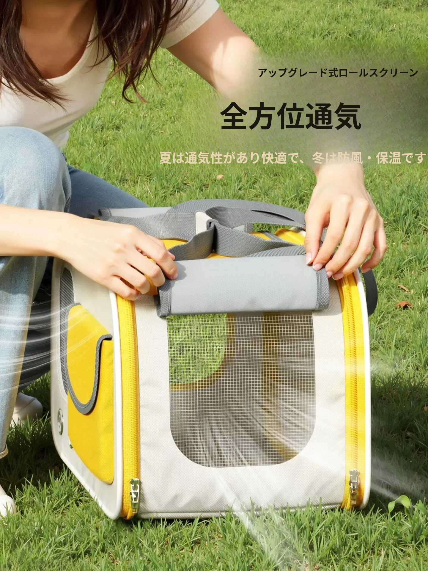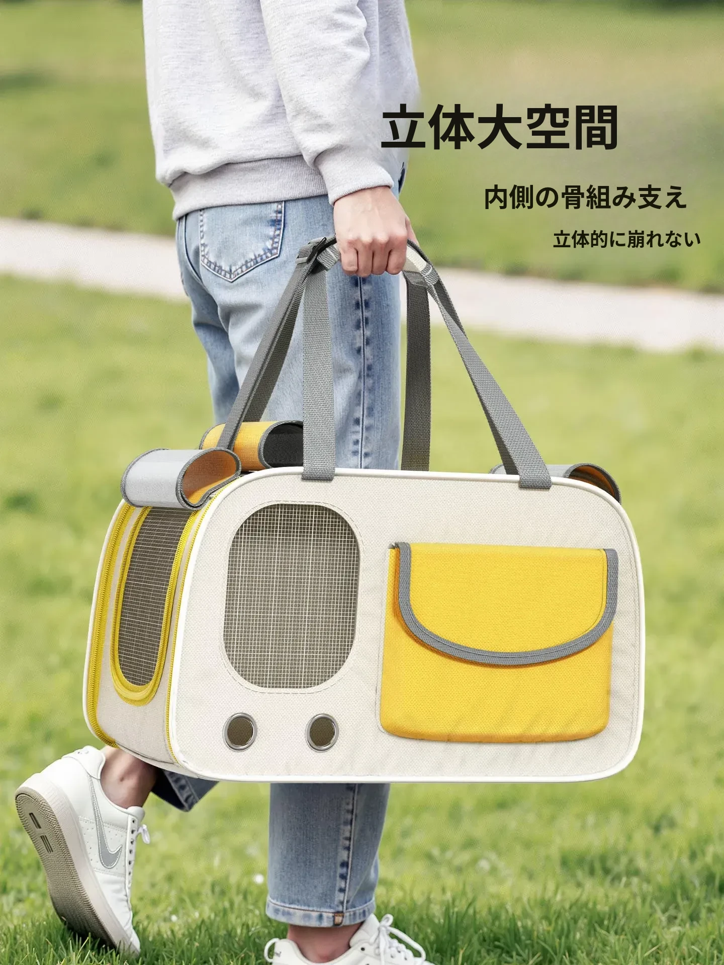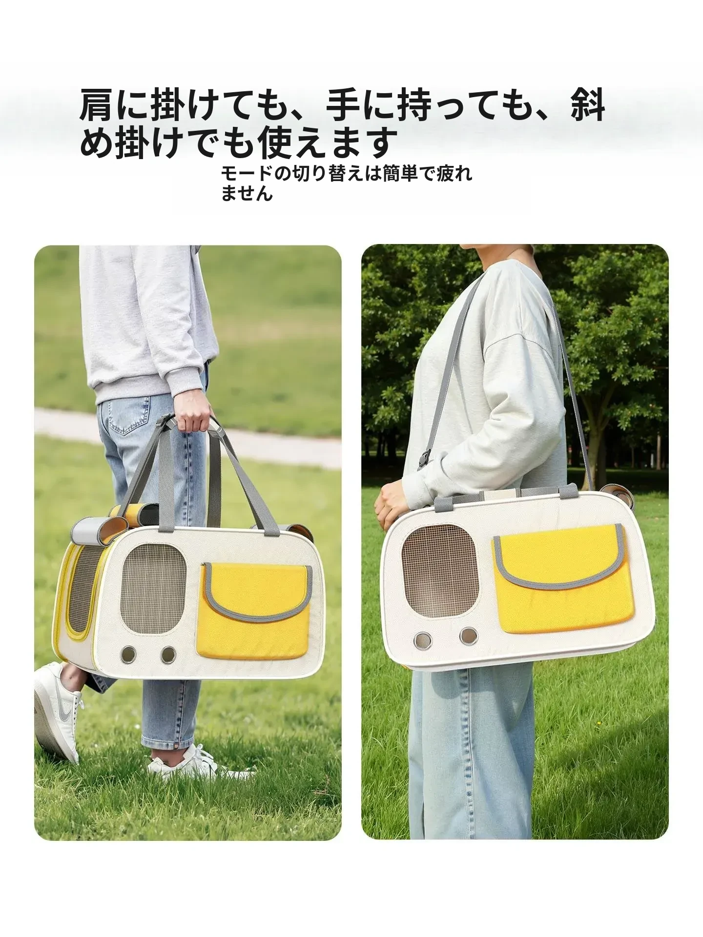レモンイエロー❤ショルダー/ハンド/クロスボディ【多面透気性アップ、ストレス軽減カーテン、太った猫も安心】