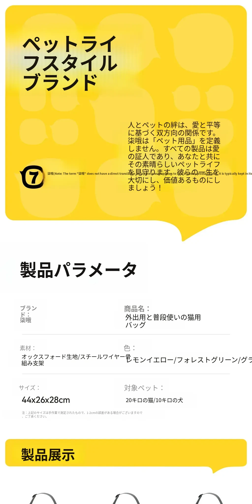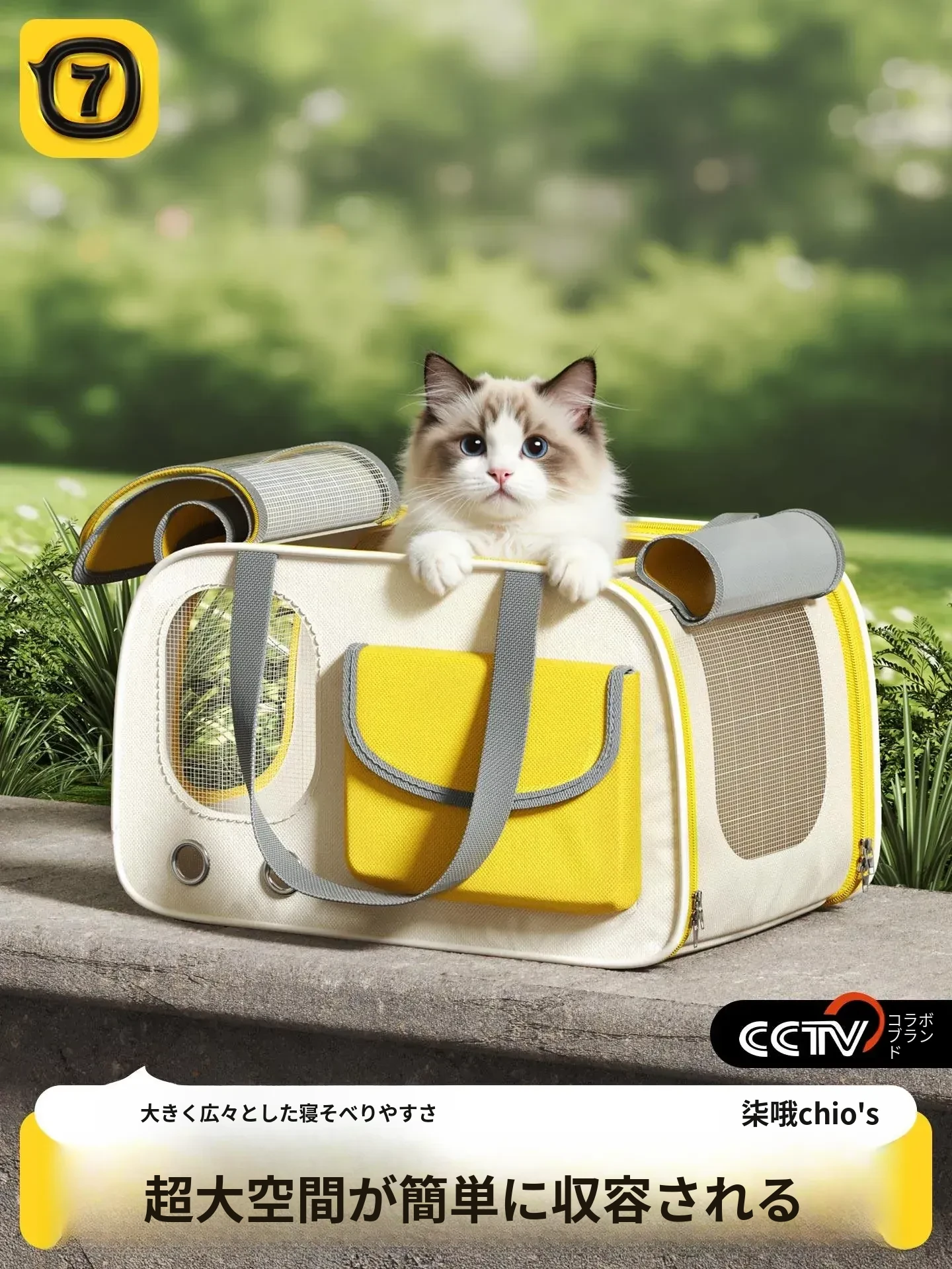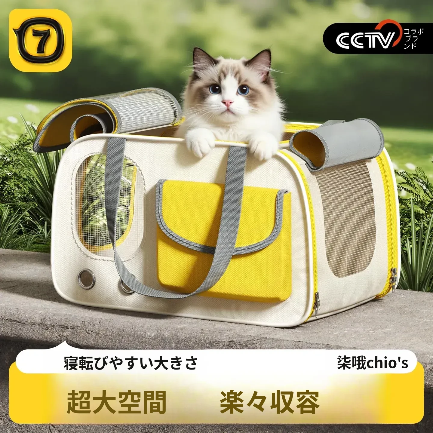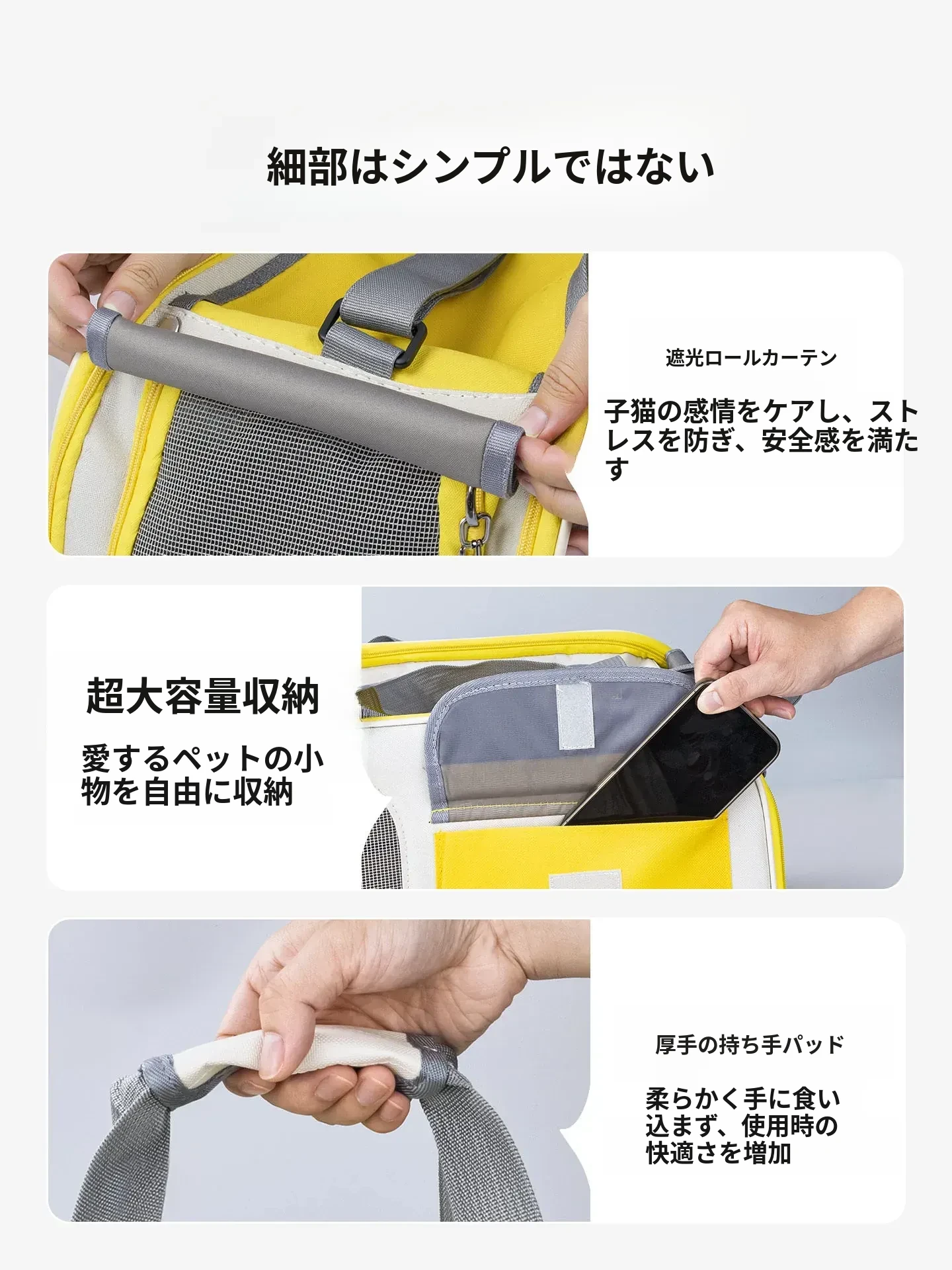 レモンイエロー❤ショルダー/ハンド/クロスボディ【多面透気性アップ、ストレス軽減カーテン、太った猫も安心】