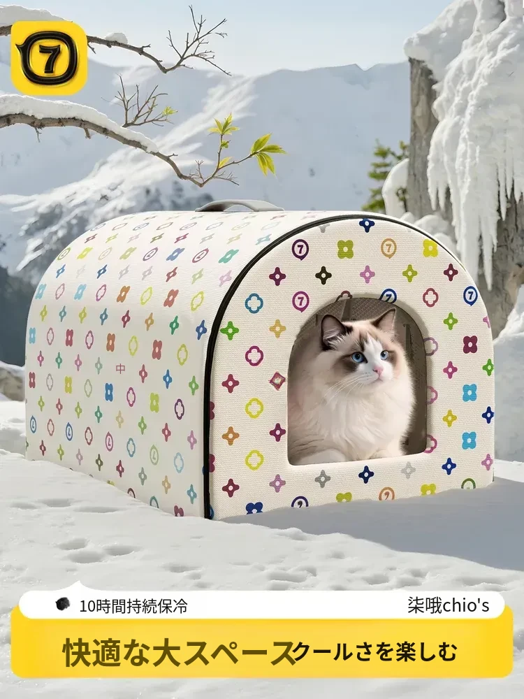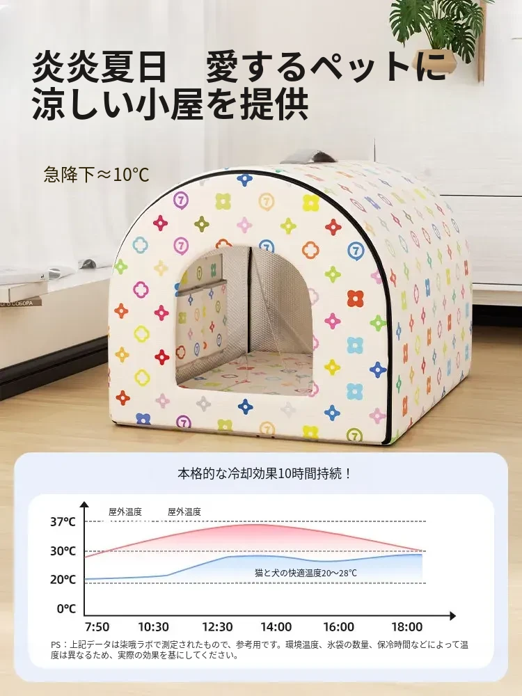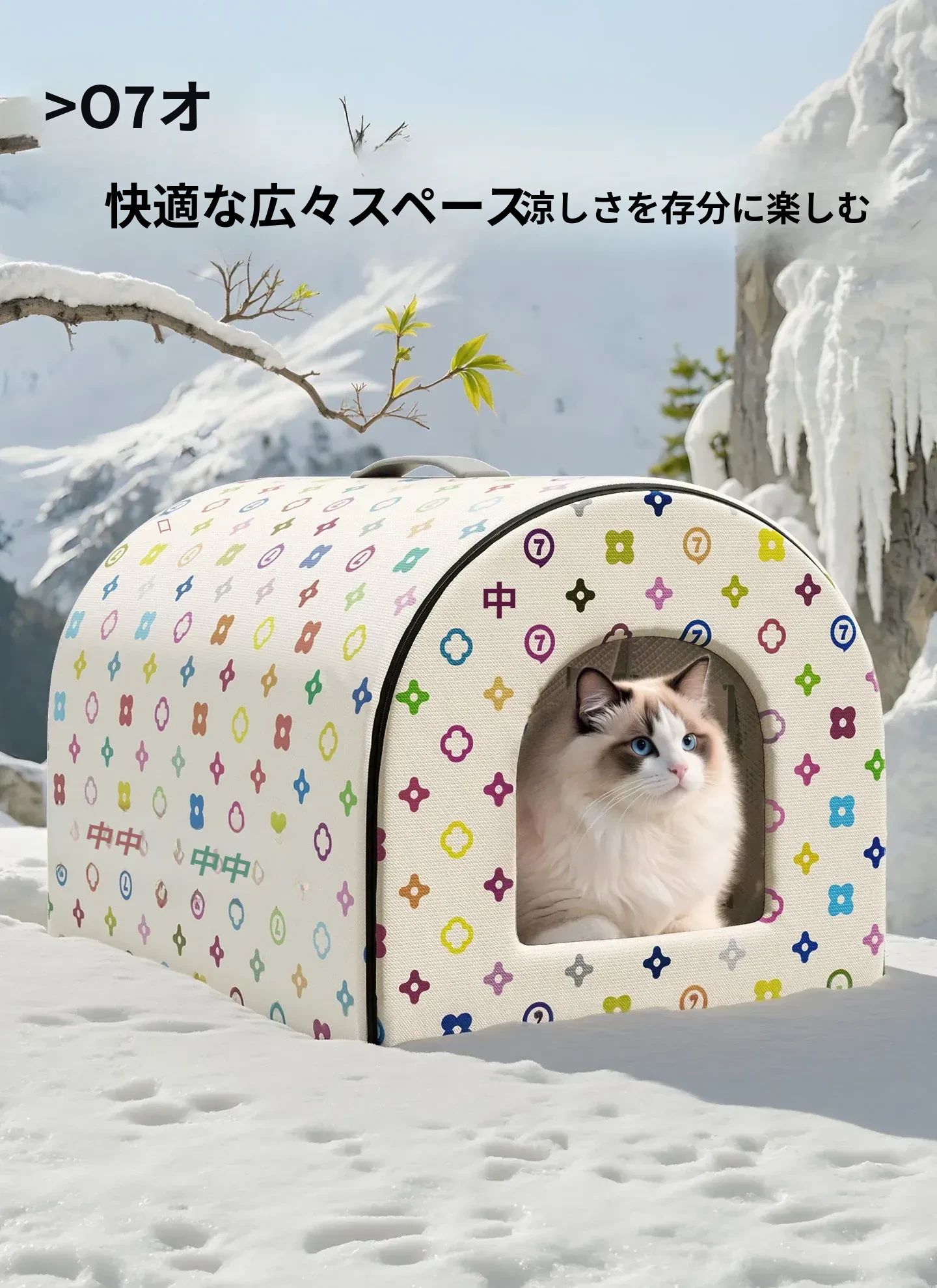 夏の猫用エアコンハウス!ひんやり快適な猫ベッド、ペット用安心の寝床。四季を通じて使える、愛猫のための至福のスペース。