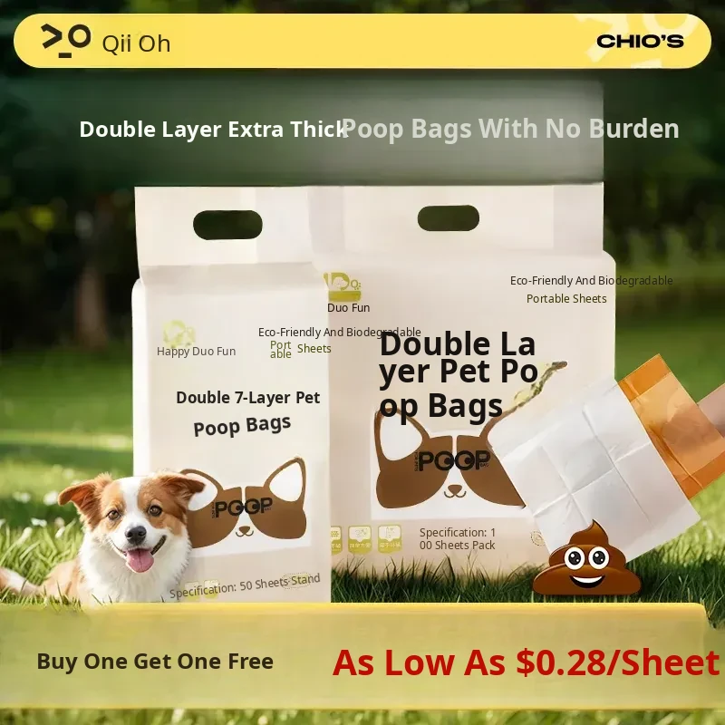 Classic Flat Mouth Style [Double-Layered Portable Bag for Picking up Poop] 100 Pieces