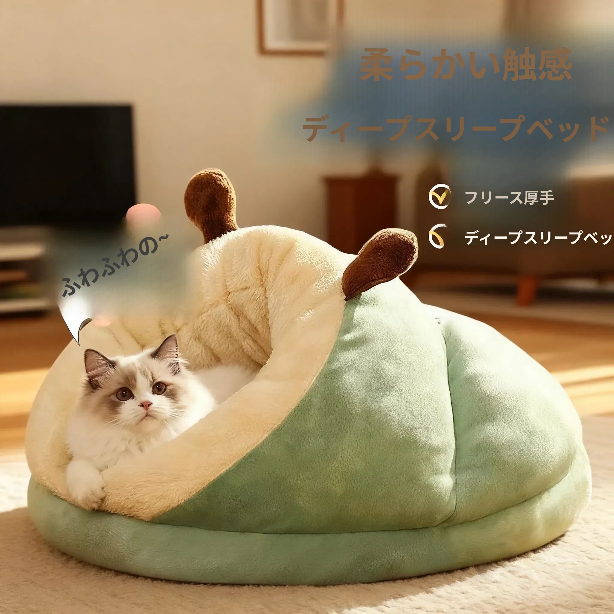 冬の暖かさを保つ毛虫型キャットハウス!半封閉デザインで安心感満載。猫ちゃんが心地よく眠れる四季兼用の厚手ドッグハウス。あなたのペットに最高の居場所を提供します!