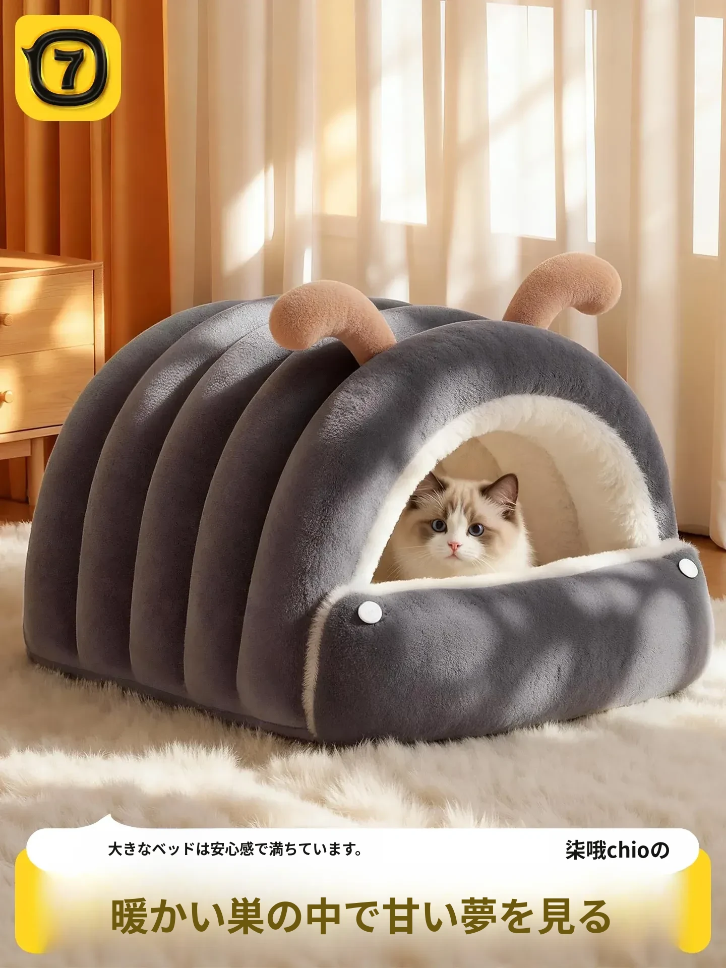 冬の暖かさを保つ毛虫型キャットハウス!半封閉デザインで安心感満載。猫ちゃんが心地よく眠れる四季兼用の厚手ドッグハウス。あなたのペットに最高の居場所を提供します!