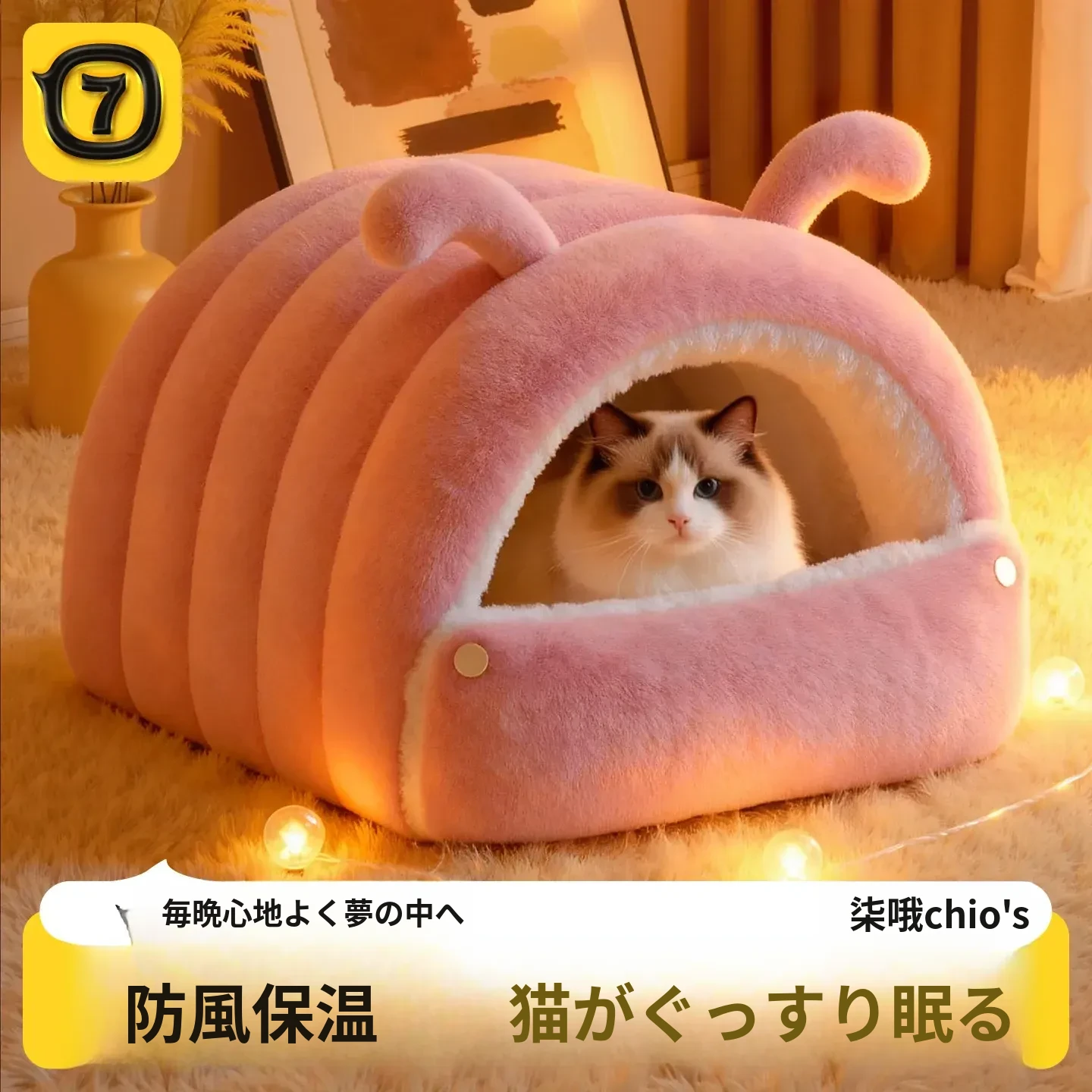 冬にぴったり!あったか毛毛虫キャットベッド - 半封閉式で安心感を提供!猫ちゃんも犬ちゃんも快適に過ごせる厚手デザインで、四季を通じて愛用できます。