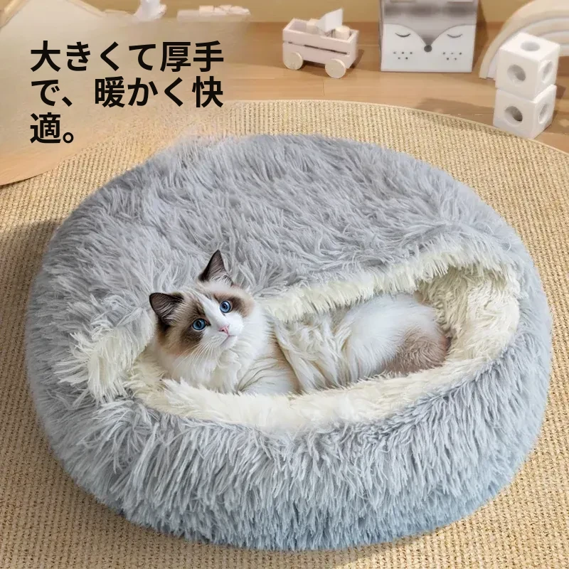 2025年新作!冬用厚手宠物ベッド、ふわふわの半密閉式デザインで子犬も安心!暖かくて快適な隠れ家、愛犬との特別な時間をお届けします。