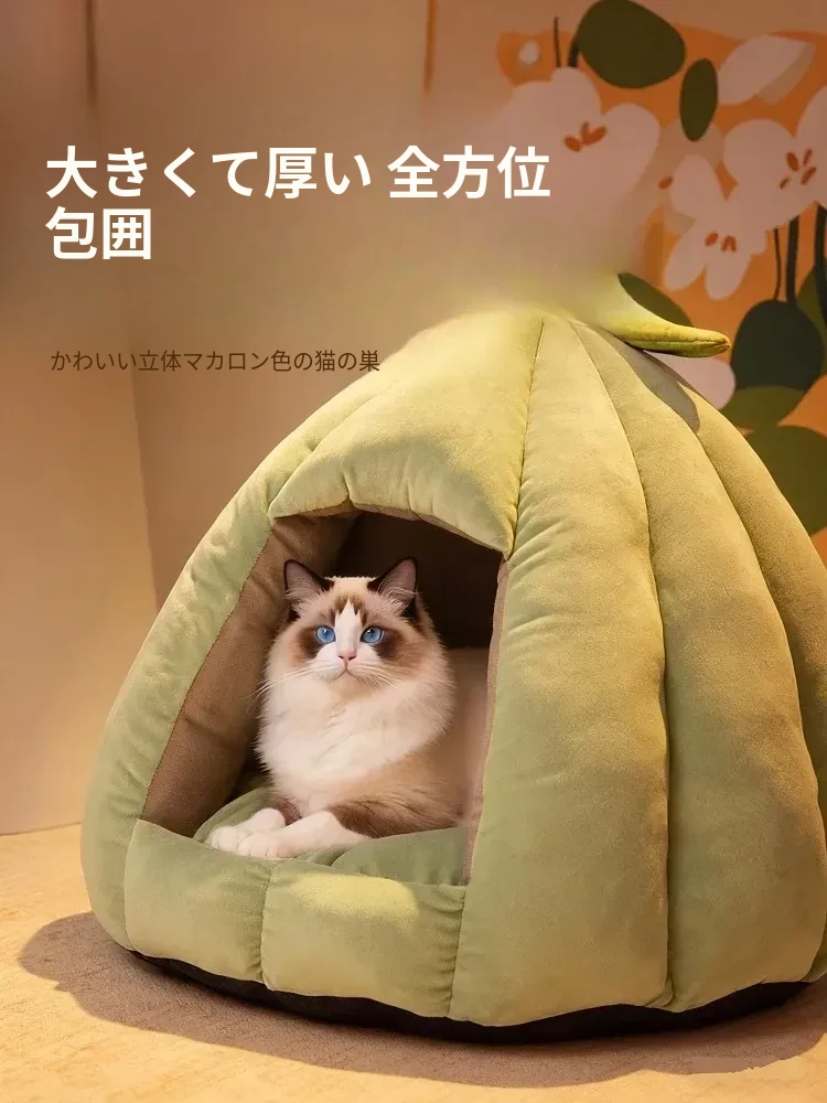 冬の暖かさを保つ厚手の猫ハウス!半密閉デザインで安心感抜群!四季を通じて使える洗える猫の寝床。愛猫のための快適空間を提供します!