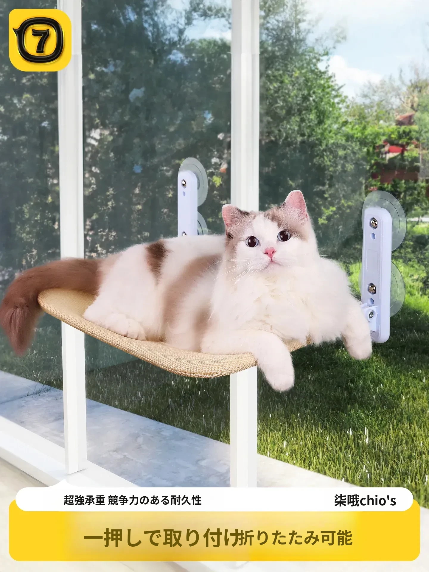 窓際にぴったり!吸盤で簡単取り付けの猫吊り床。愛猫が陽射しを浴びながらくつろげる特別なスペース。快適な猫用キャットタワーで、遊びとリラックスを両立!