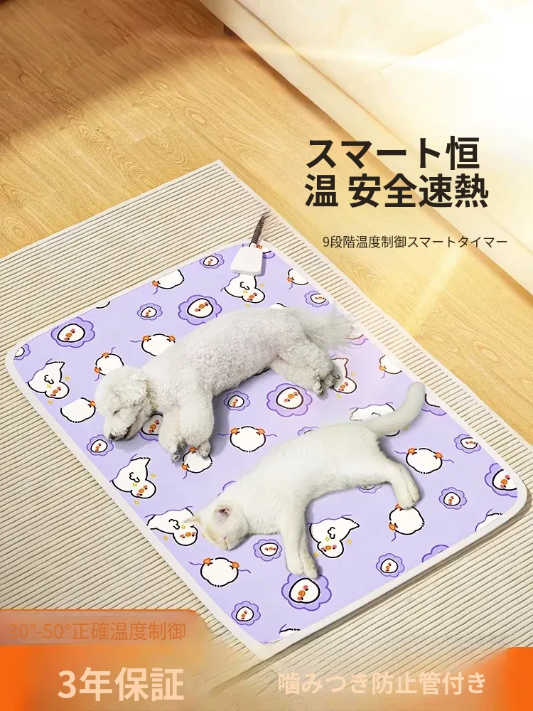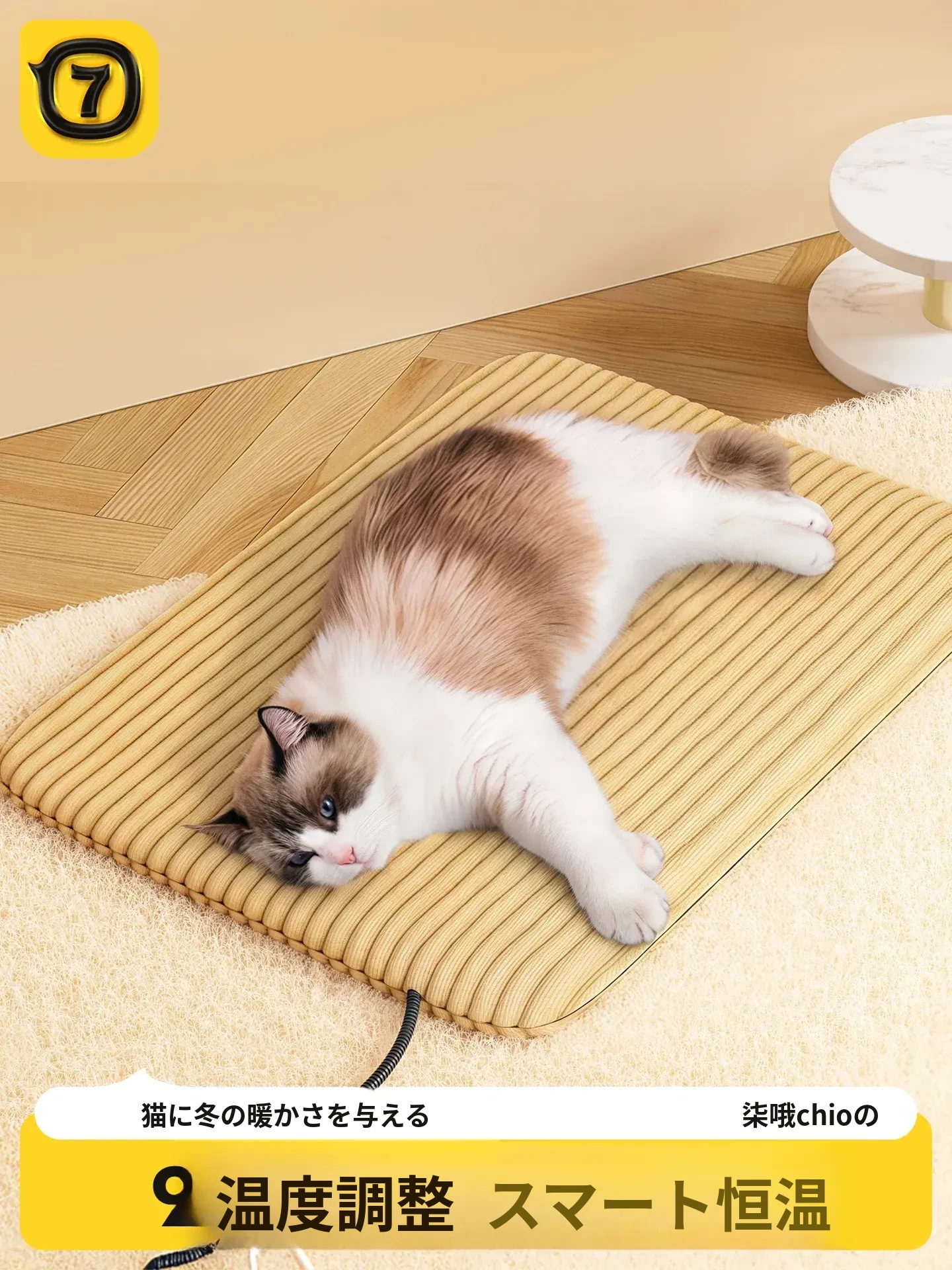 ペット専用電熱マット - 猫ちゃんのための温度調整ヒーター、漏電防止&噛みつき防止設計、小型暖房器具、犬用電気ブランケットで愛犬も快適に!